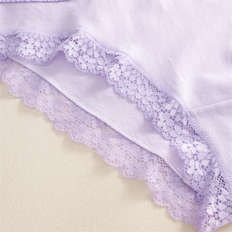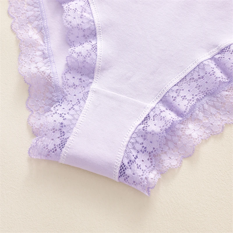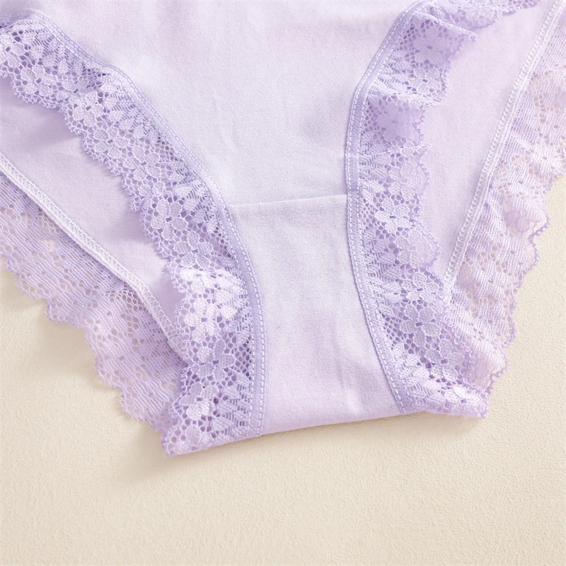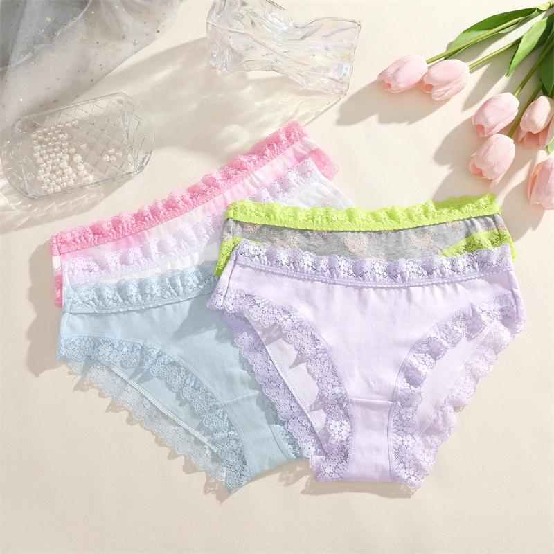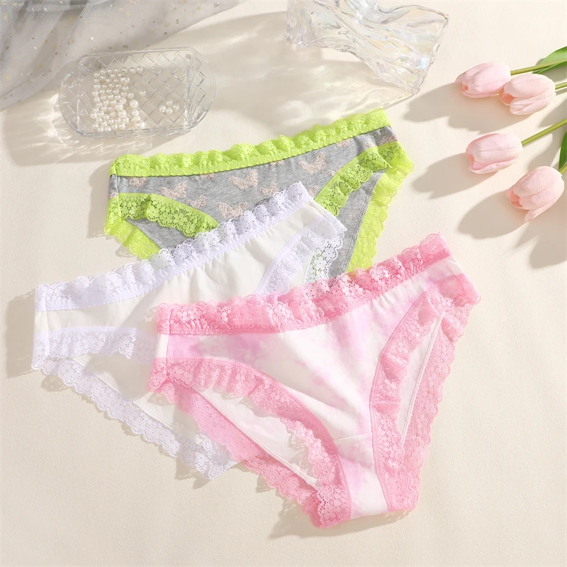 FINETOO 3Pcs Cotton Women’s Cute Butterfly Print Panties Sexy Breathable Solid Underwear Girls Lace Comfortable Triangle Pants