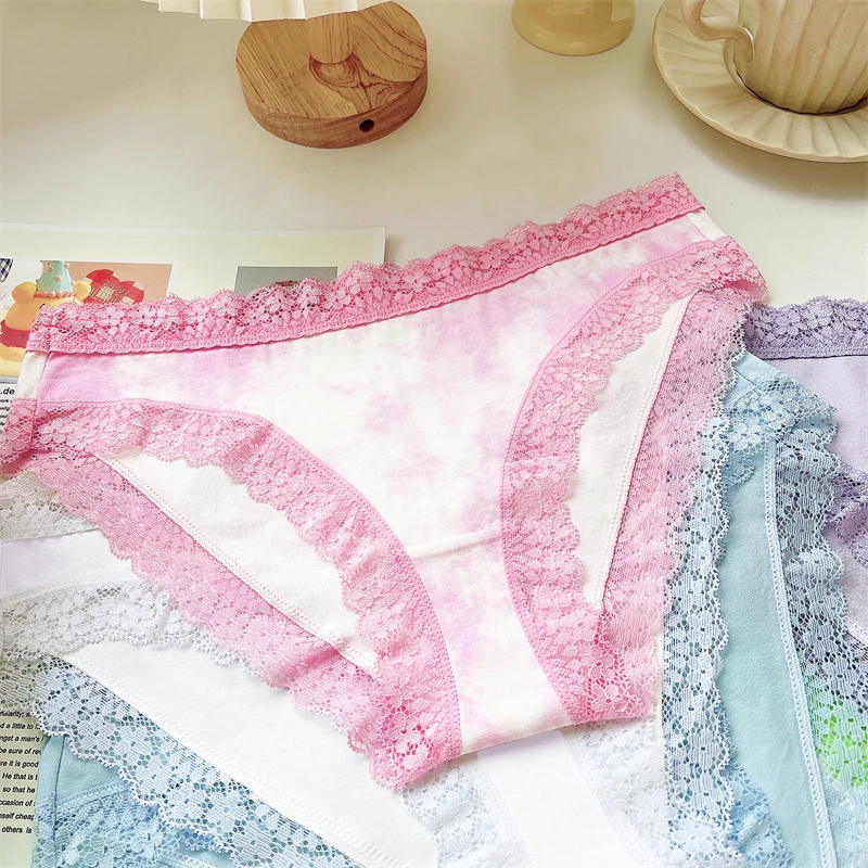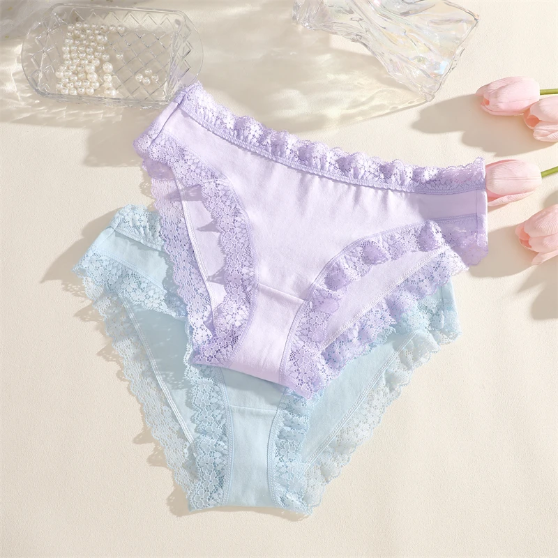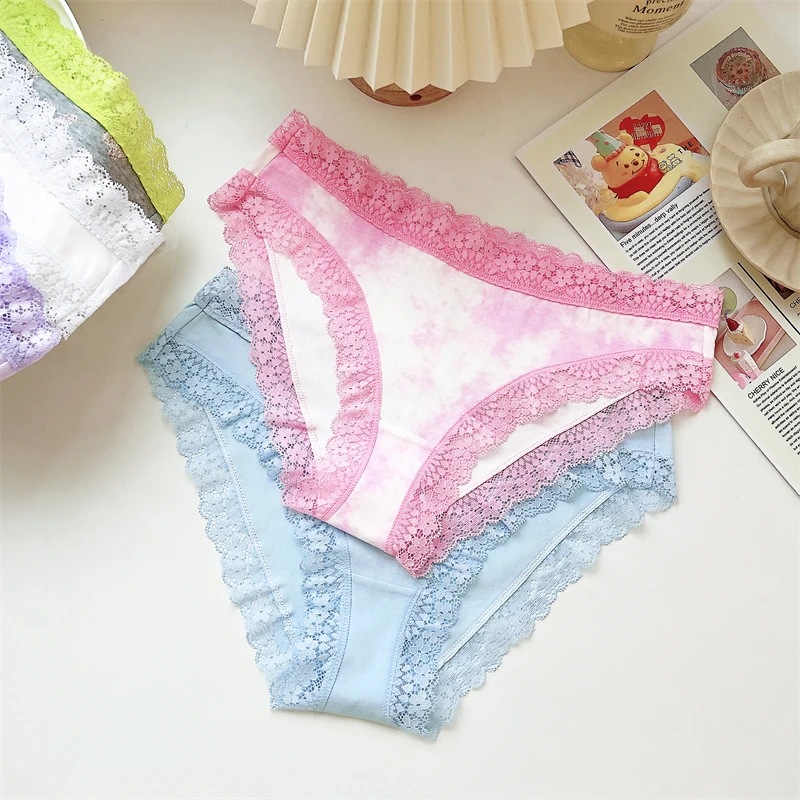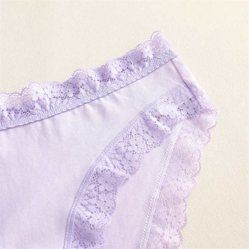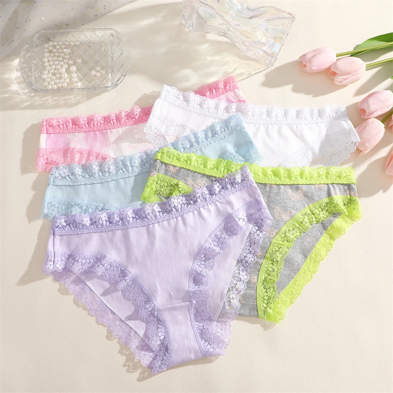 FINETOO 3Pcs Cotton Women’s Cute Butterfly Print Panties Sexy Breathable Solid Underwear Girls Lace Comfortable Triangle Pants