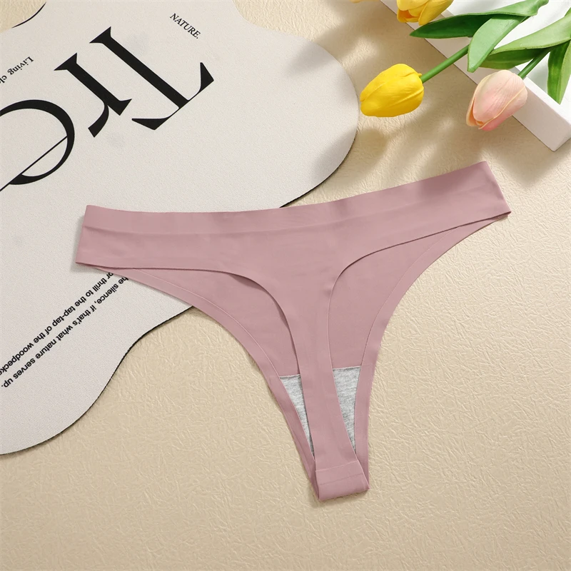 Item:FINETOO 3PCS Seamless Female Thongs Sexy Women’s Panties Silk Satin Underwear G-Strings Low-Rise Invisible Underpants T-Back Hot