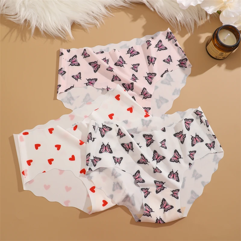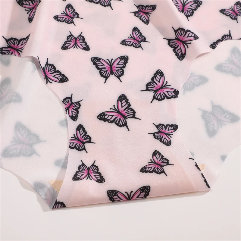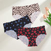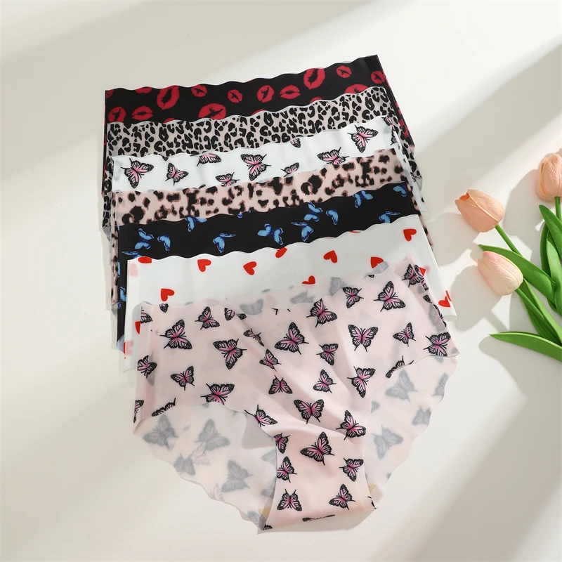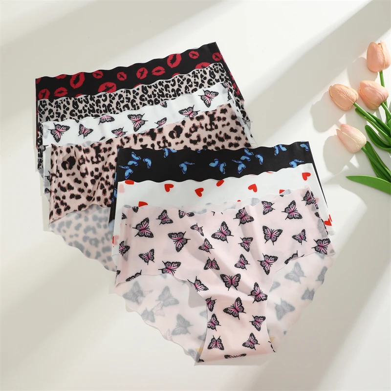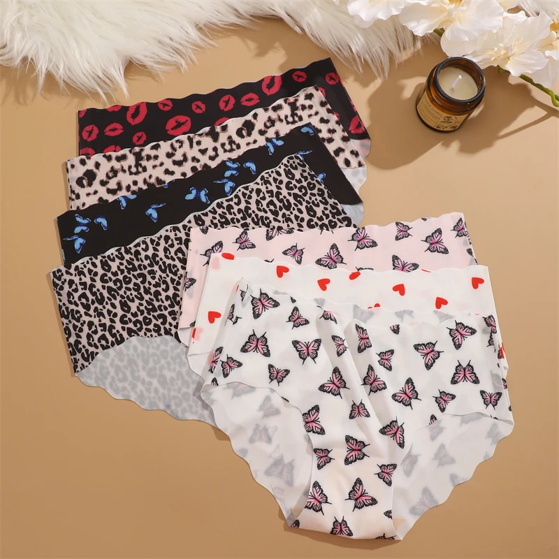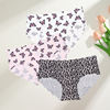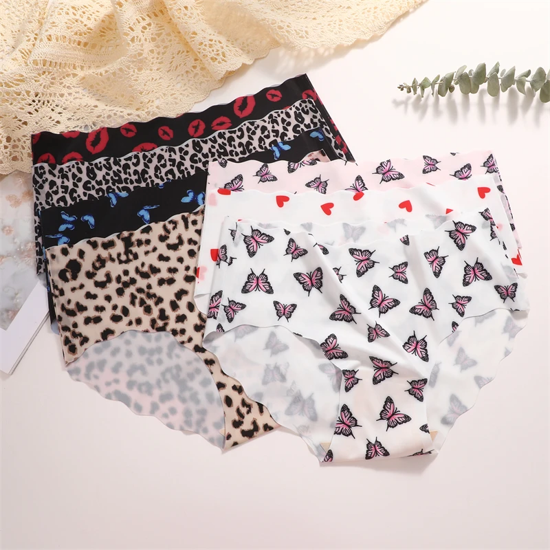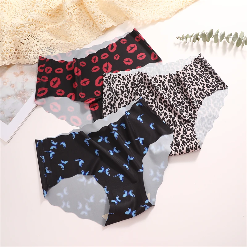FINETOO 3Pcs Seamless Print Underwear for Women Sexy Leopard Butterfly Briefs Female Ice Silk Panties Comfortable Lingerie S-XXL