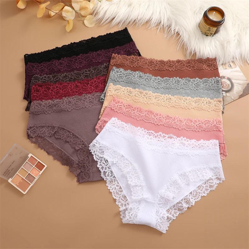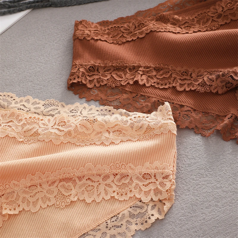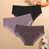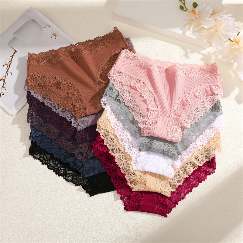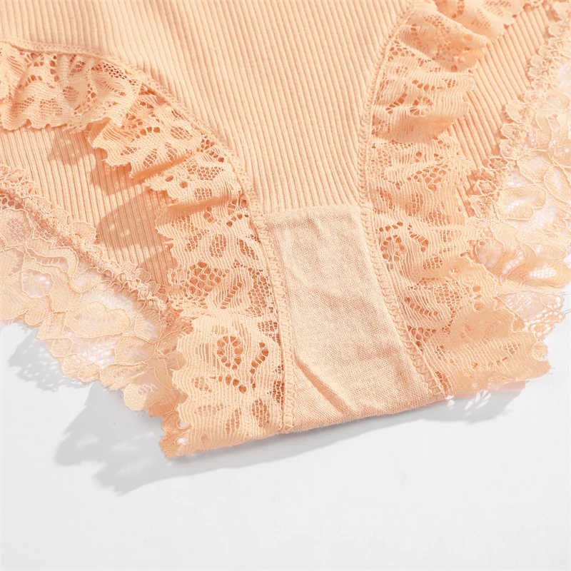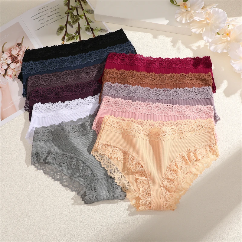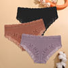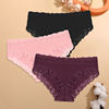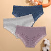 FINETOO 3Pcs/set Women’s Cotton Briefs Lace Floral Underwear Low Waist Panties Sexy Striped Breathable Panties Comfort Lingerie