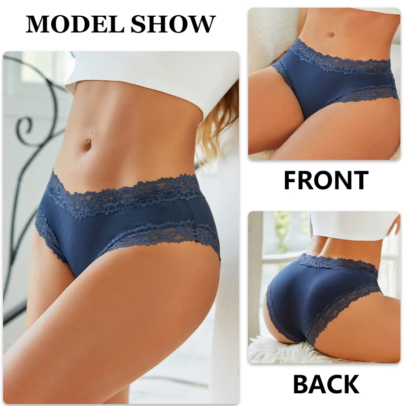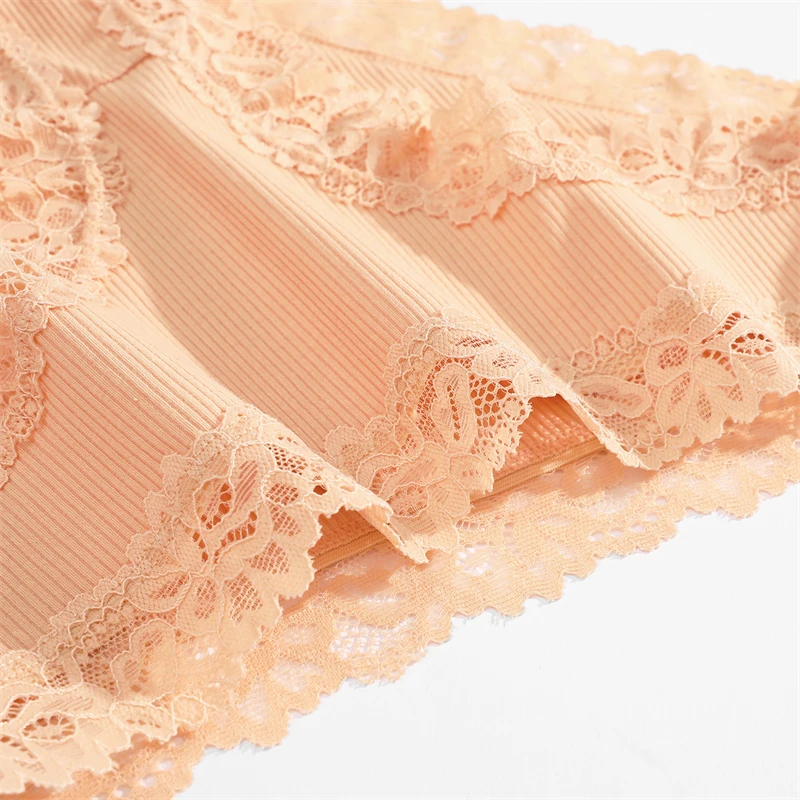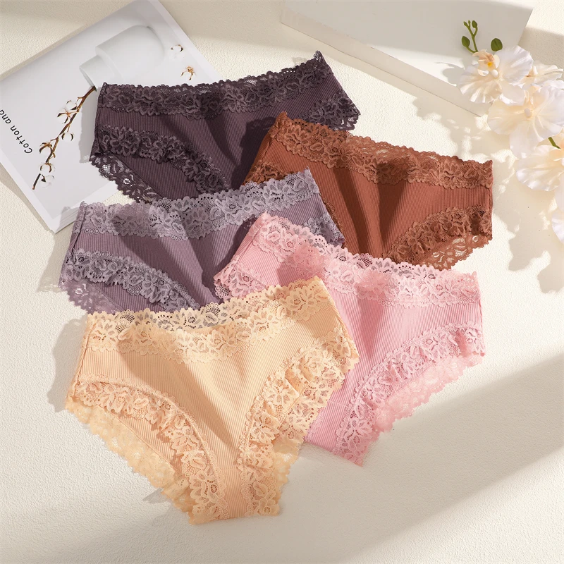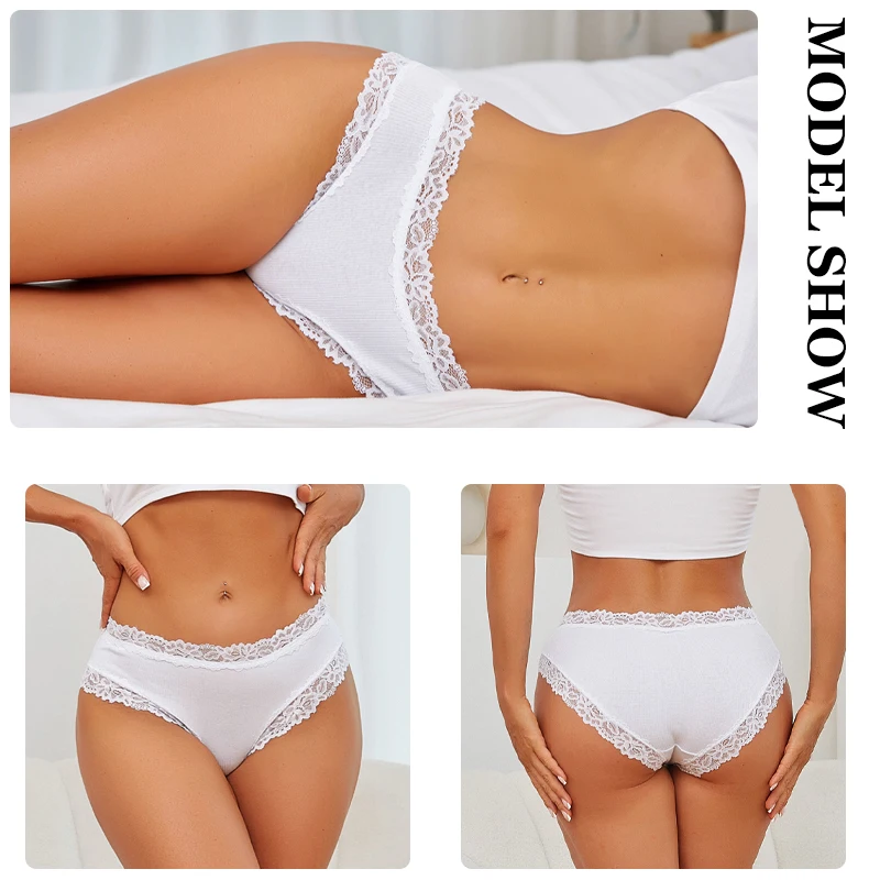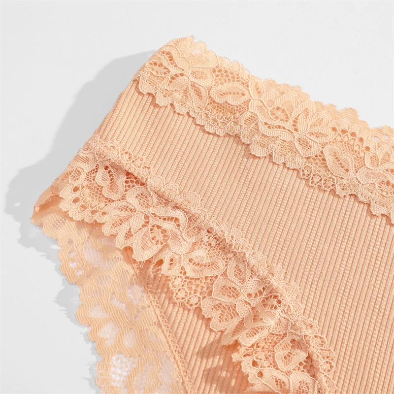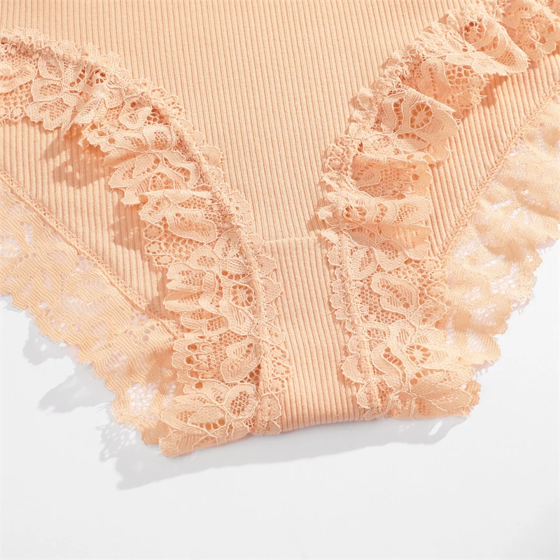 FINETOO 3Pcs/set Women’s Cotton Briefs Lace Floral Underwear Low Waist Panties Sexy Striped Breathable Panties Comfort Lingerie