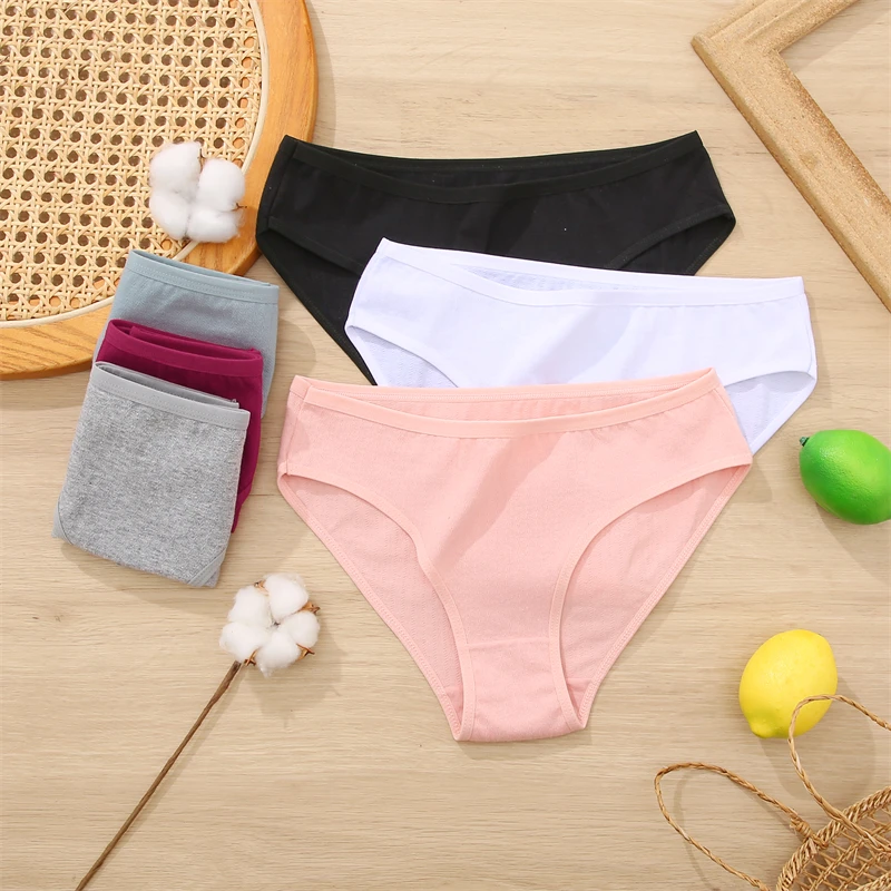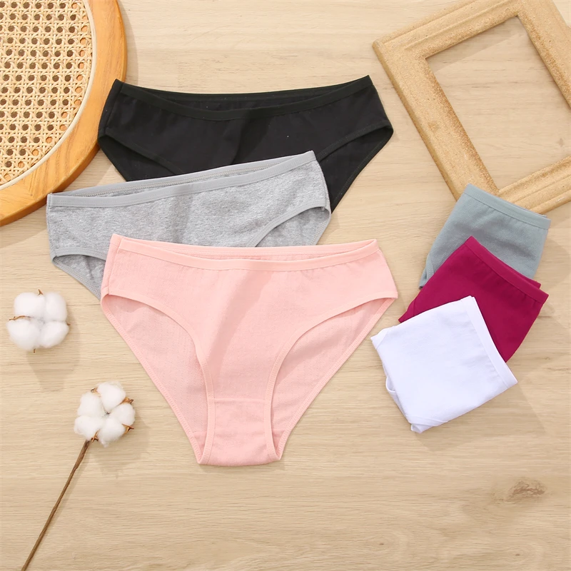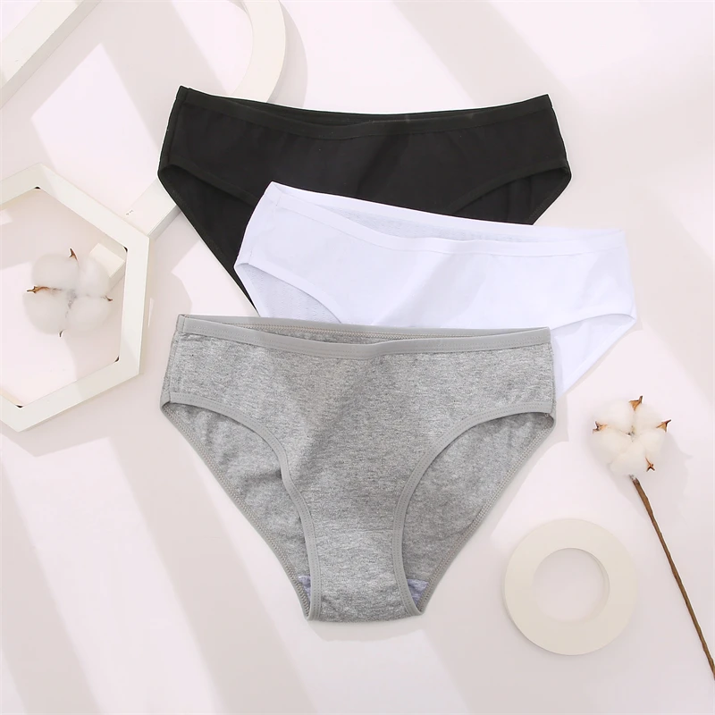 Item:FINETOO 3Pcs Women Cotton Panties Comfortable Briefs Sexy Low Waist Underwear Solid Color Ladies Underpants Lingerie Intimates