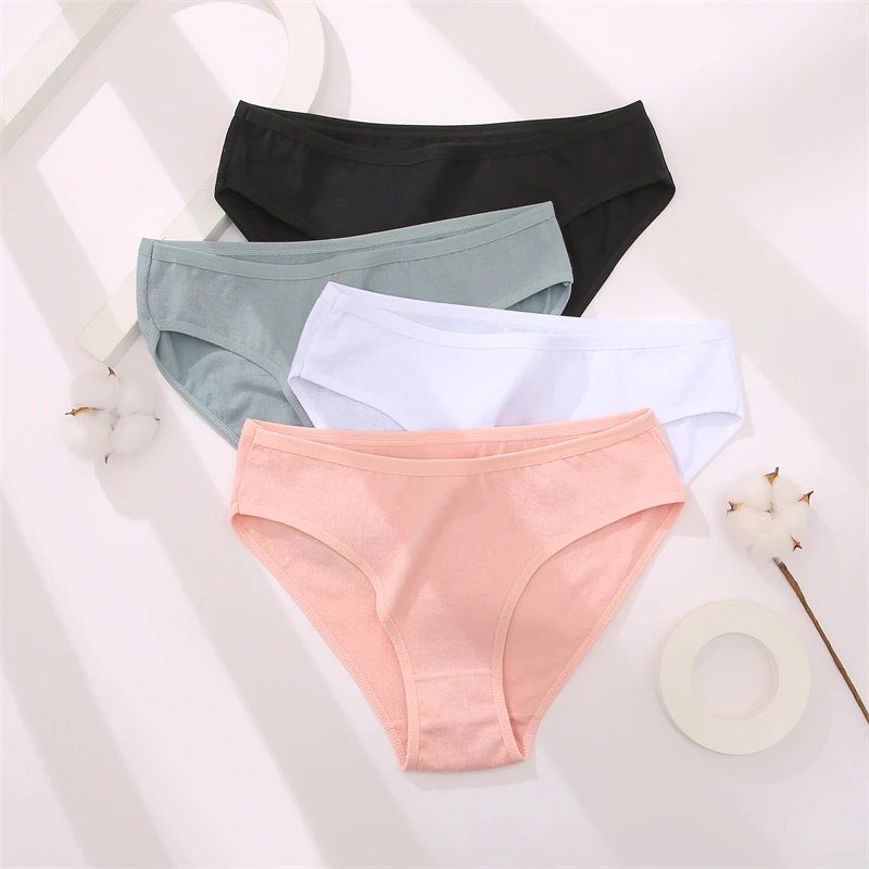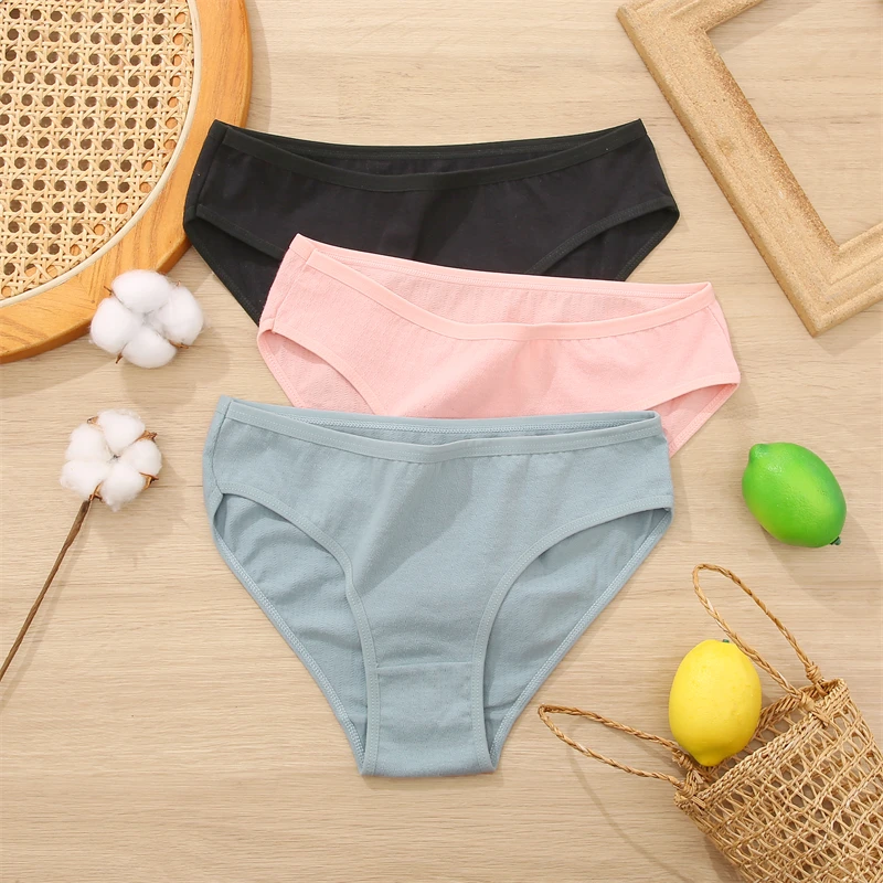 FINETOO 3Pcs Women Cotton Panties Comfortable Briefs Sexy Low Waist Underwear Solid Color Ladies Underpants Lingerie Intimates