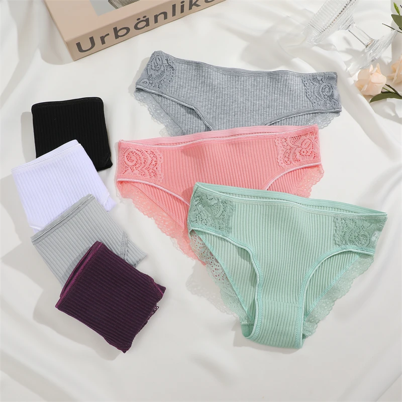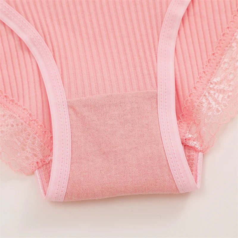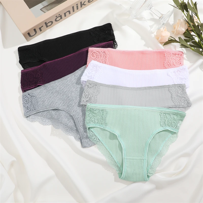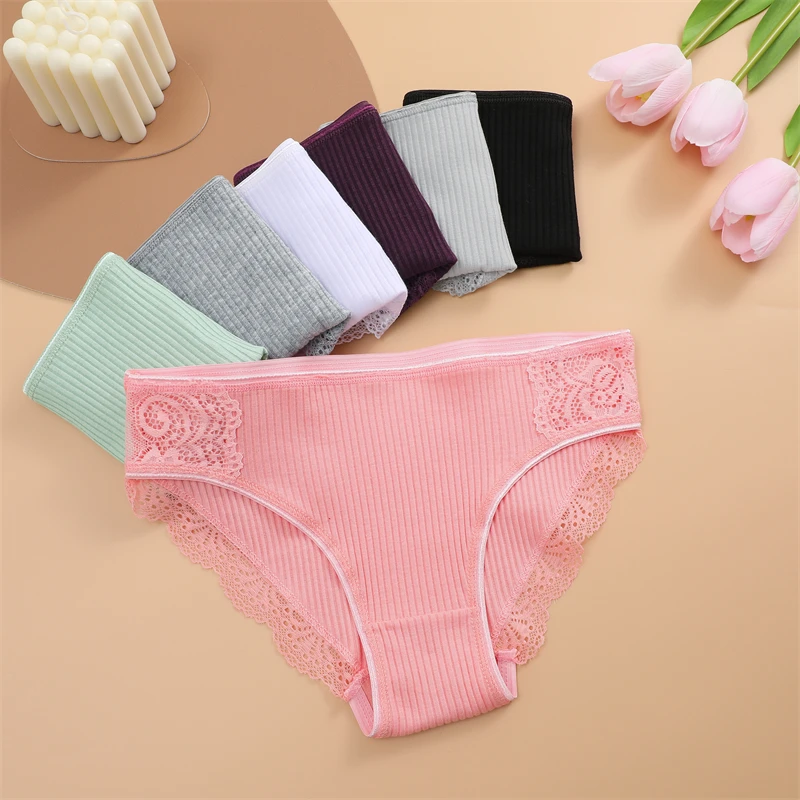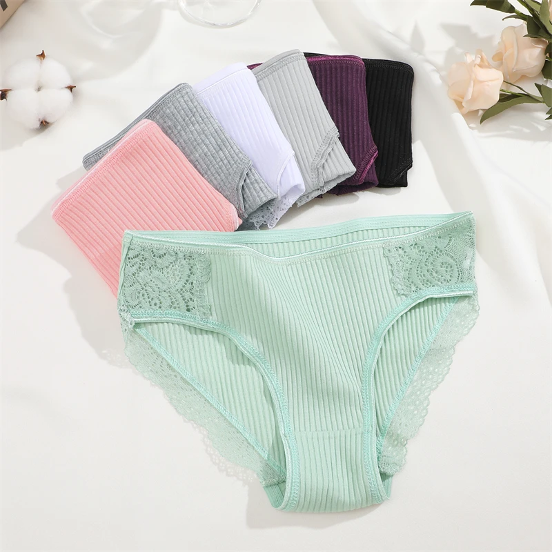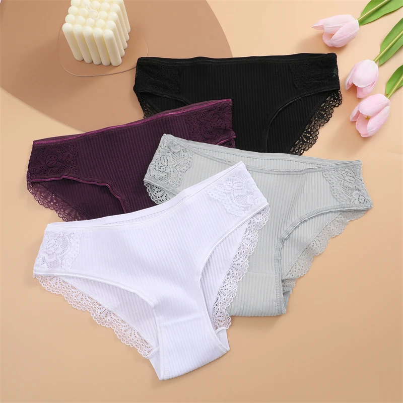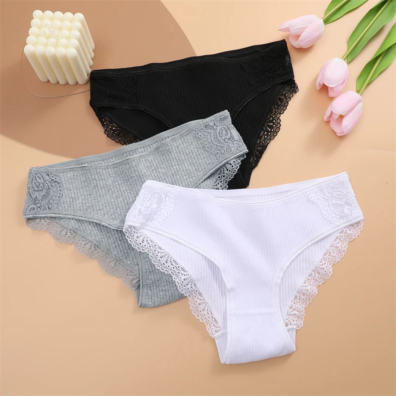 Item:FINETOO 3PCS Women Cotton Panties Sexy Lace Floral Briefs Low Waist Solid Color Underpants Female Soft Patchwork Lingerie M-2XL