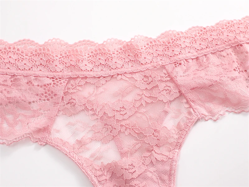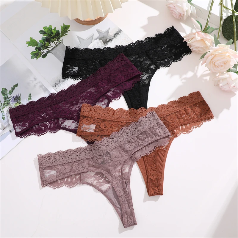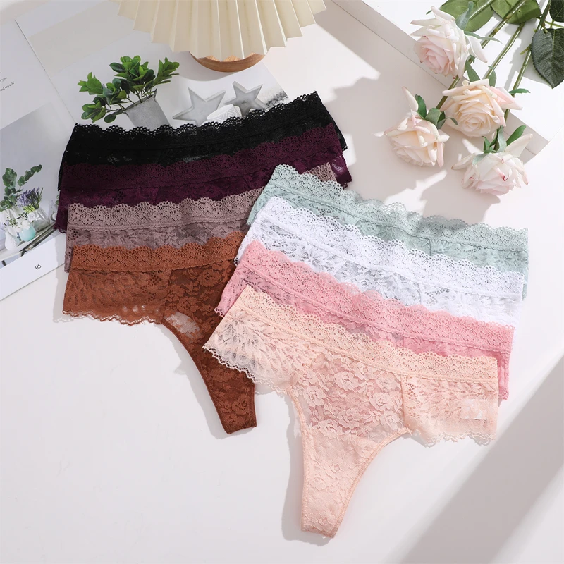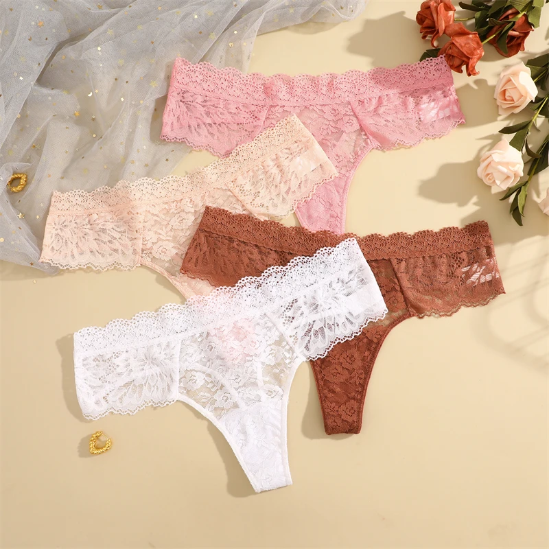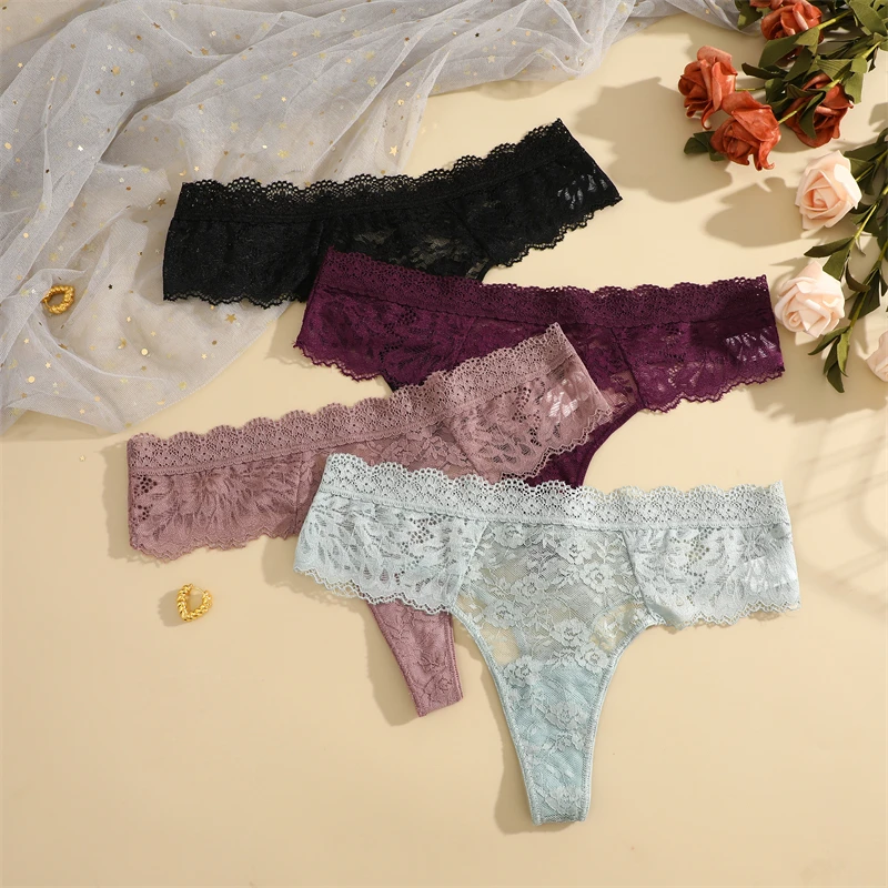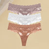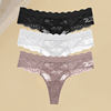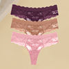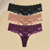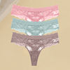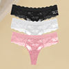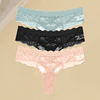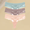 FINETOO 3Pcs Women Lace Hollow Out Underwear Sexy Floral Print Panties Female Solid Low-Waist Thong Breathable G-string Lingerie