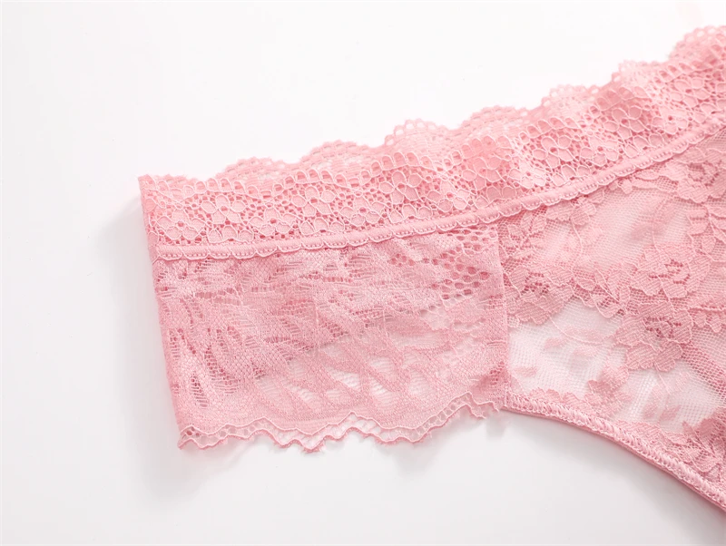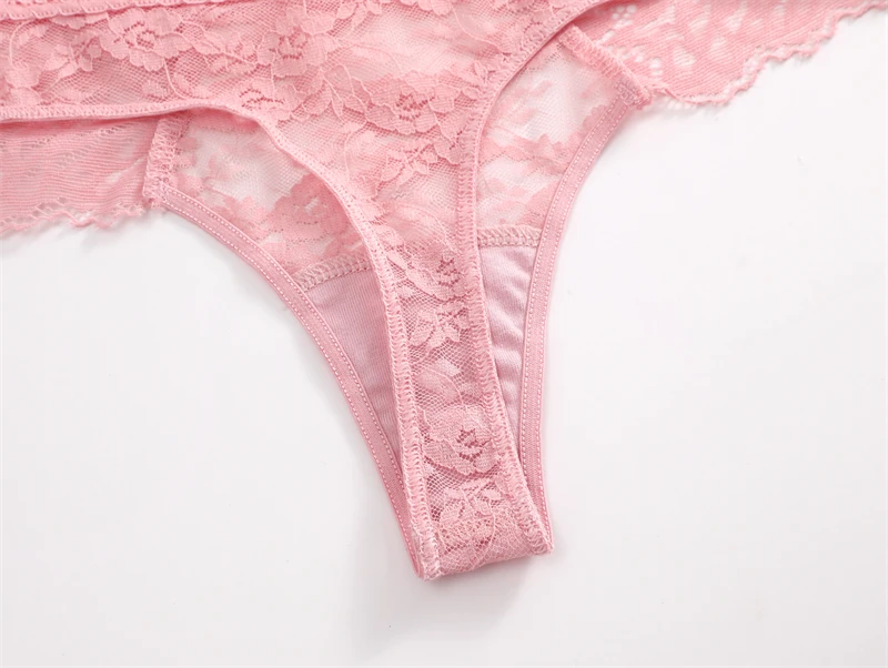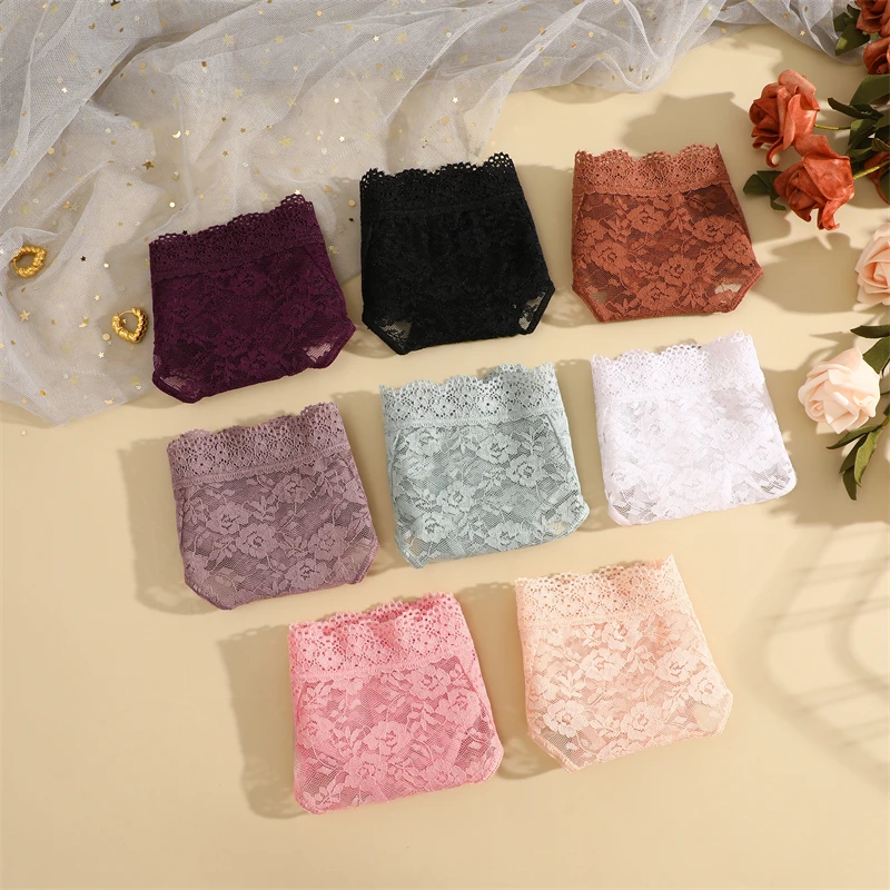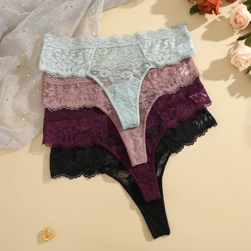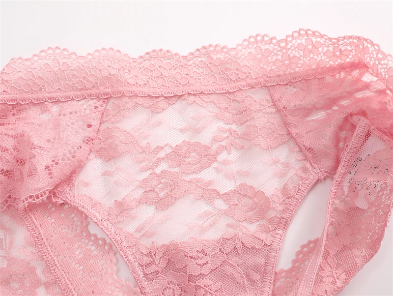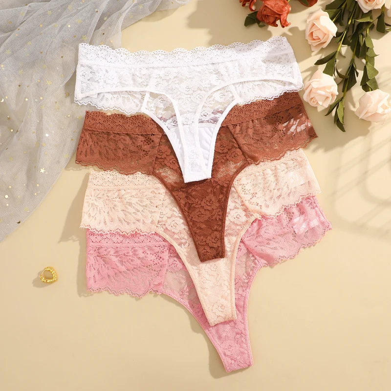 FINETOO 3Pcs Women Lace Hollow Out Underwear Sexy Floral Print Panties Female Solid Low-Waist Thong Breathable G-string Lingerie