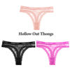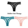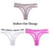 FINETOO 3PCS Women Lace Thong Letter Bikini Underwear Sexy Hollow Out T-Back Panties Female Low-Rise Floral Perspective Lingerie