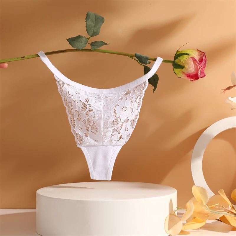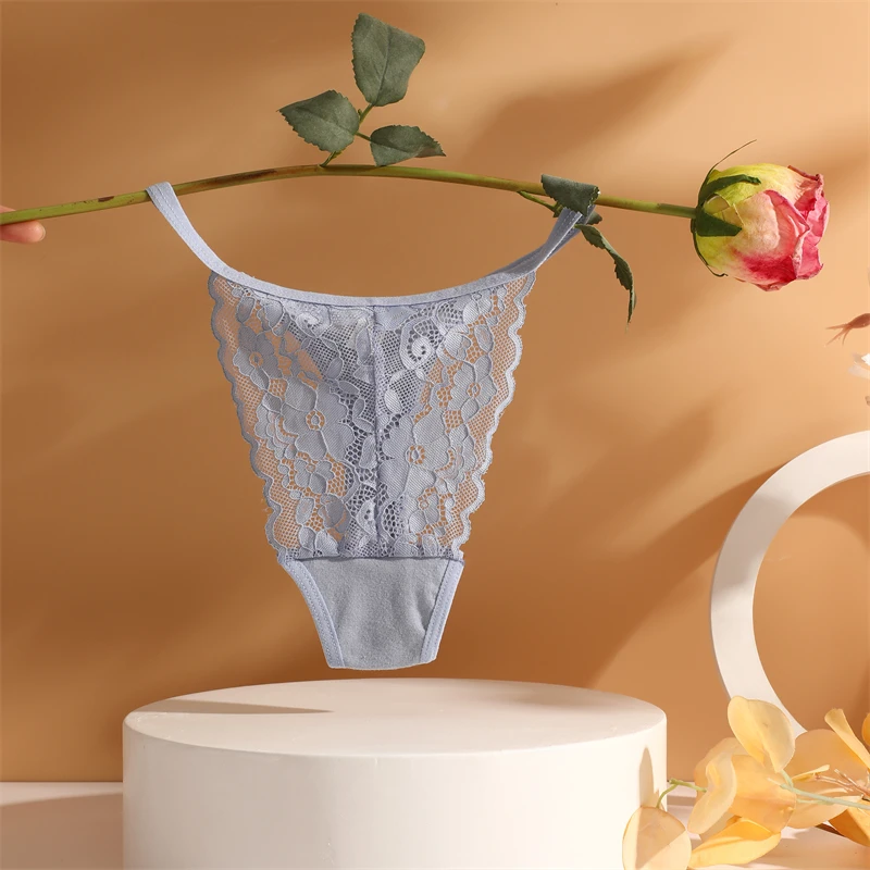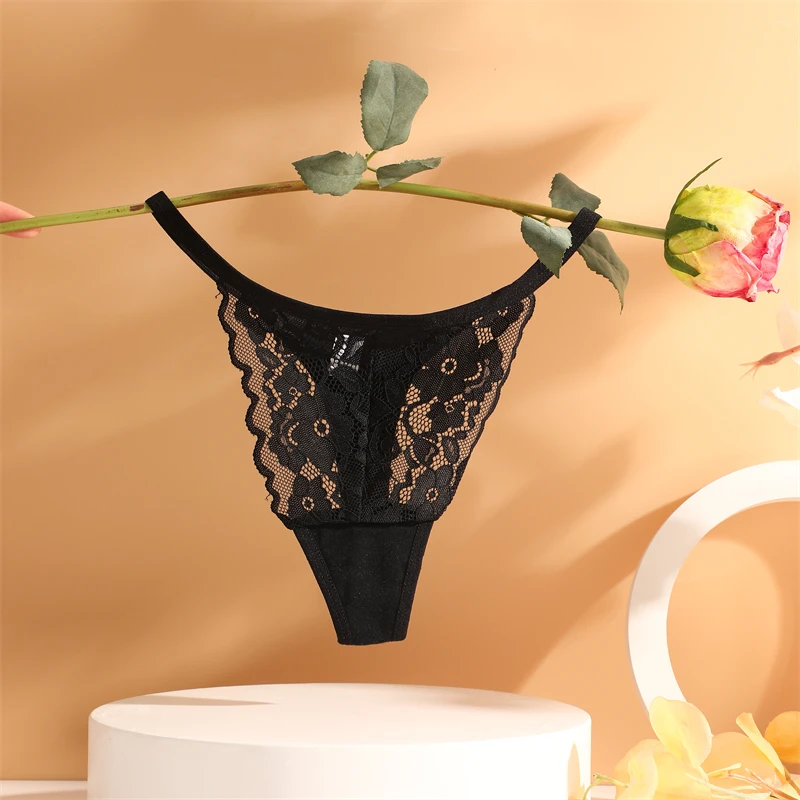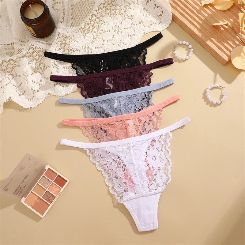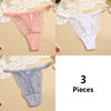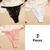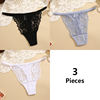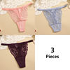 FINETOO 3pcs Women Lace Thongs Sexy Floral Print Hollow Out Panties Female Low Waist Lingerie Solid Thin Strap G-string Bikini