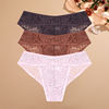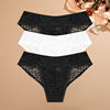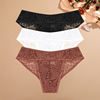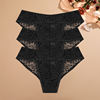 FINETOO 3Pcs Women Lace Underpants Low Waist Panties Sexy Hollow Out Solid Briefs Transparent Underwear Ladies Comfort Lingerie