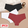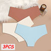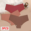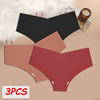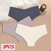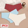 FINETOO 3PCS Women Ultra-thin Underpants Panties Seamless Briefs Sexy V-Waist Cozy Stretch Lingerie Female Solid Color Intimates