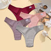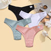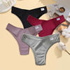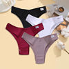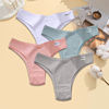 FINETOO 4Pcs Cotton Ribbed Striped Underwear Women Brazilian Panties Sexy V Waist Briefs Female Breathable T-Back Lingerie M-XL