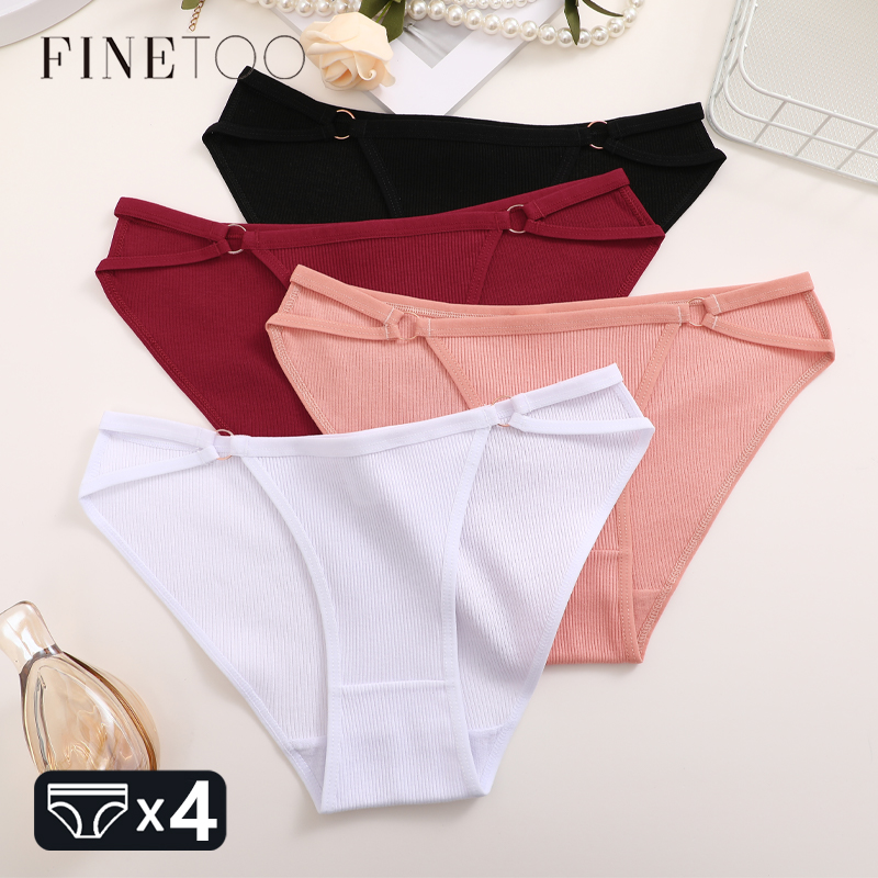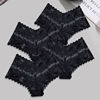 FINETOO 4pcs Lace Floral Boyshorts Underwear for Women Sexy Hollow Out Solid Panties Female Low-Waist Breathable Girls Lingerie