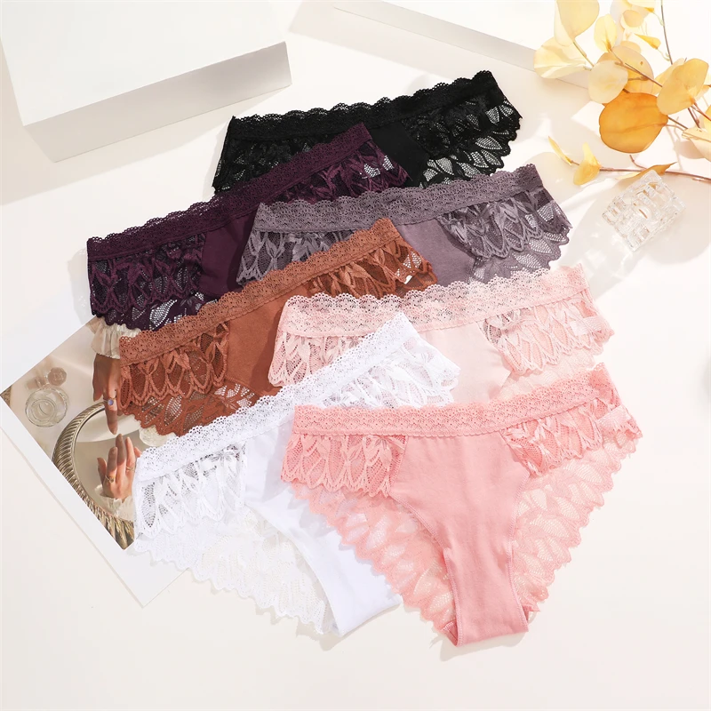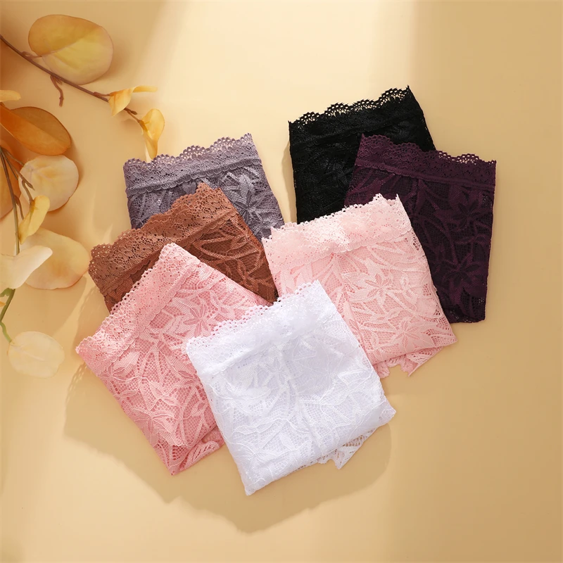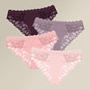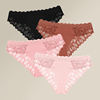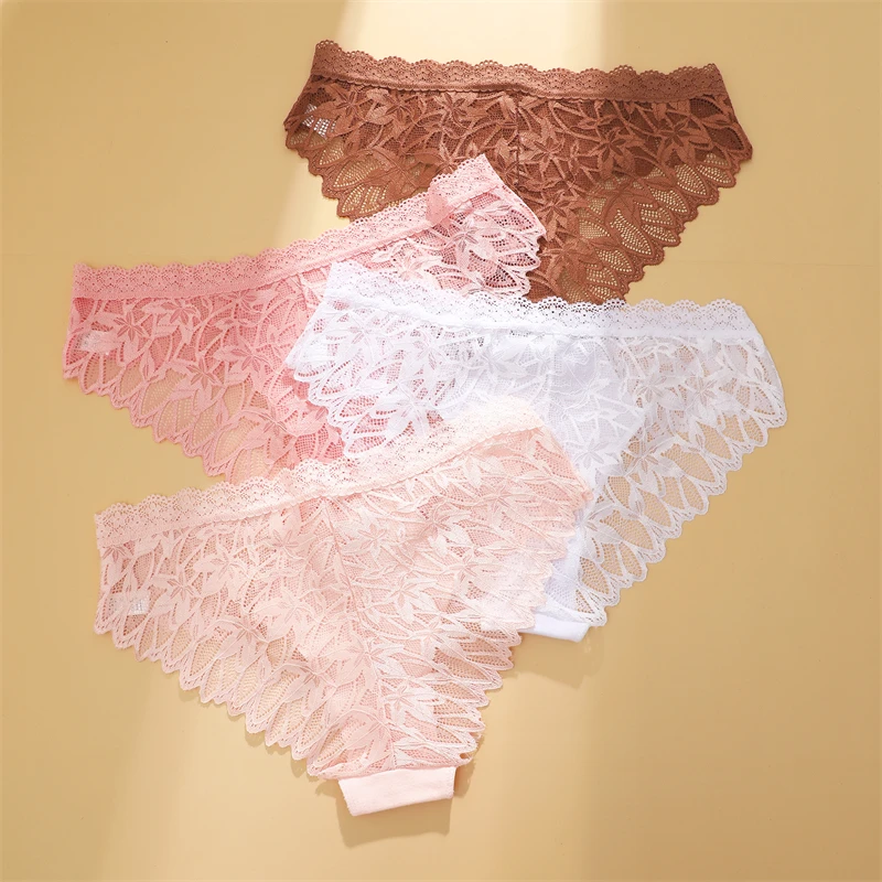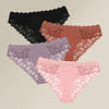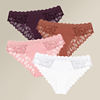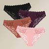 FINETOO 4Pcs Lace Hollow Out Underwear Women Sexy Low-Waist Maple Leaf Printed Panties Girls Comfortable Solid Briefs Lingerie
