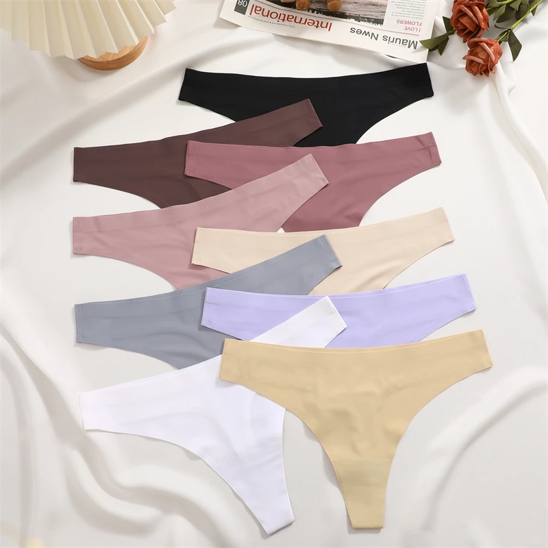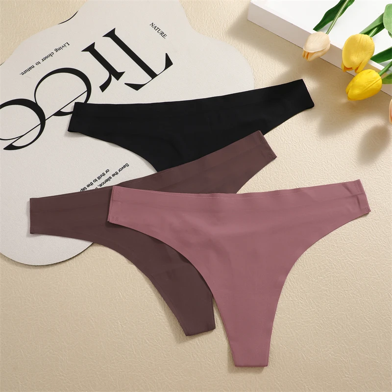 Item:FINETOO 4PCS Silk Satin Seamless Underwear Low Waist Thongs Sexy Solid Color Bikini Underpants Female Stretch Intimates Lingerie