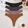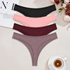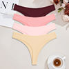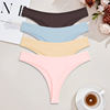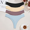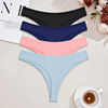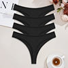 FINETOO 4pcs Women Cotton Striped Underwear Sexy Breathable Thongs Low-Waist Solid G-string Girls Soft Bikini Lingerie Intimates
