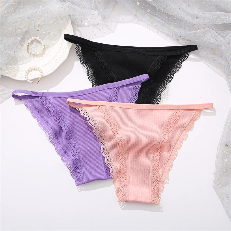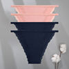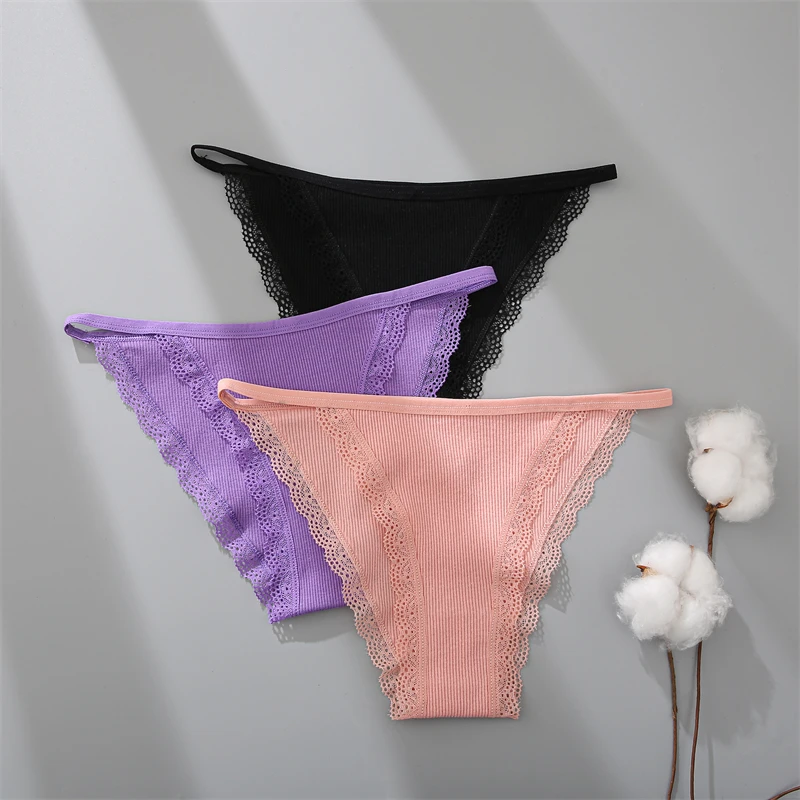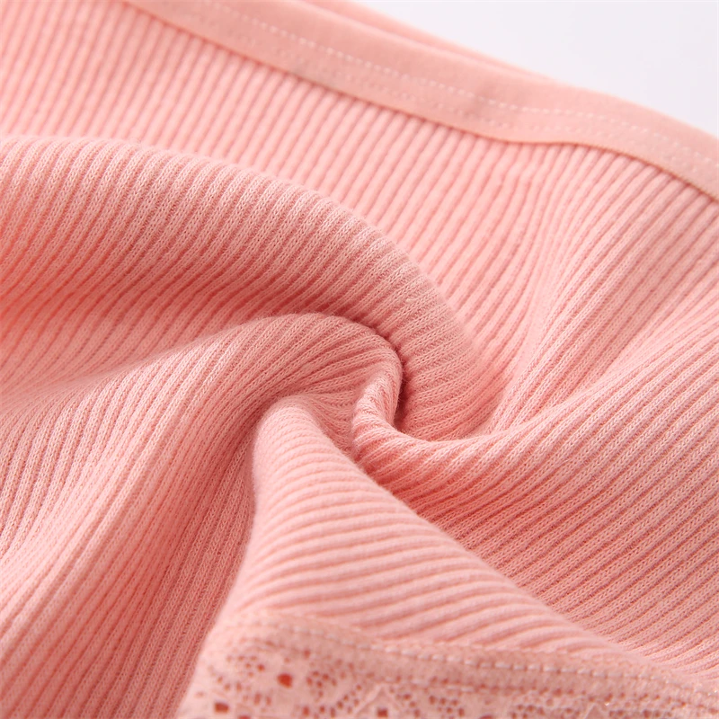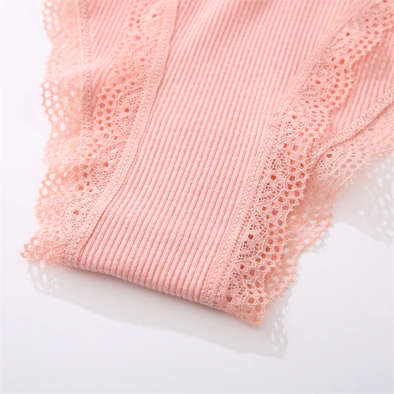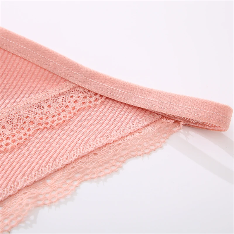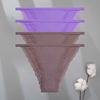 FINETOO 4Pcs Women’s Cotton Panties Lace Floral Underwear Sexy Ribbed Striped Briefs Ladies Solid Low-Waist Lingerie Underpants