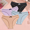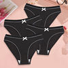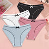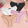 FINETOO 4Pcs Women’s Ribbed Underwear Sexy Bow Tie Mid-Waist Panties Girls Solid Color Breathable Briefs Sports Soft Lingerie