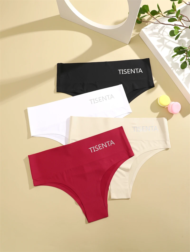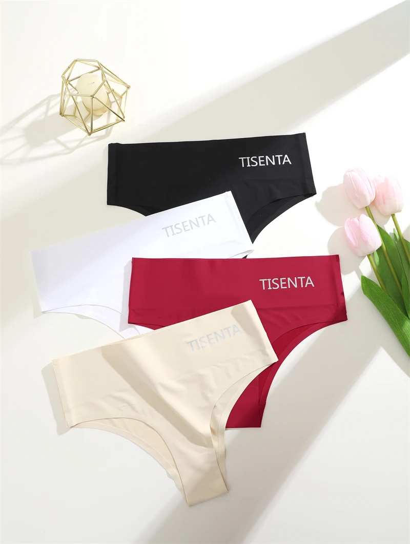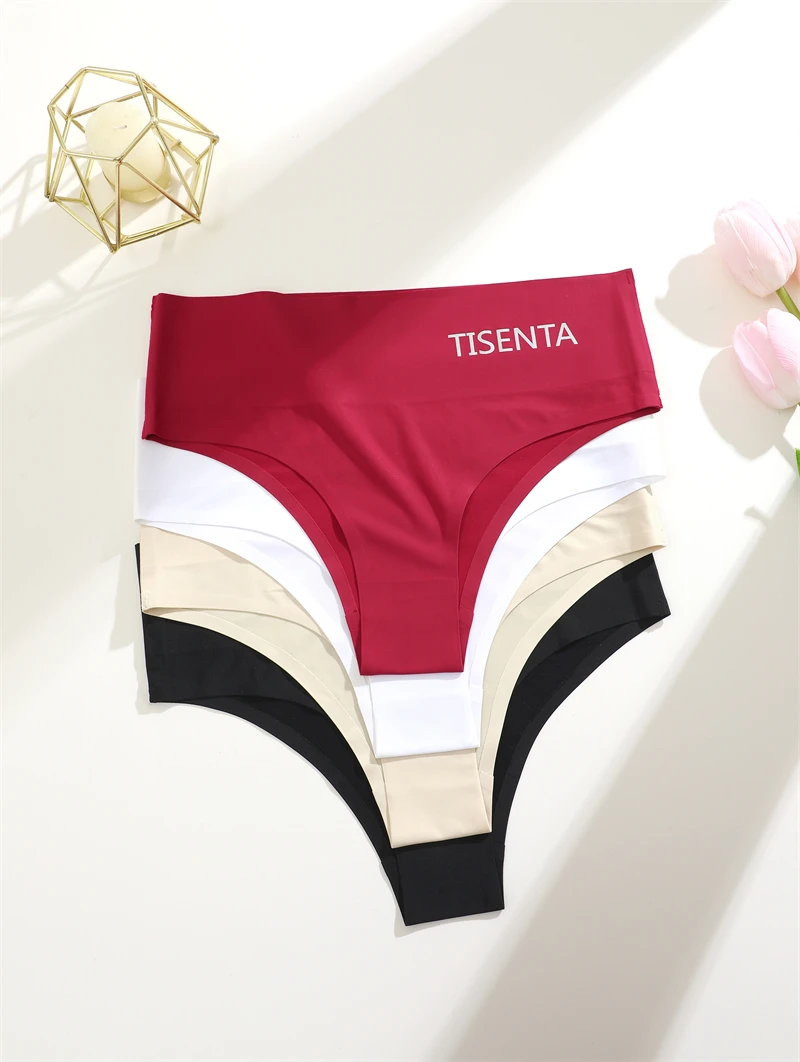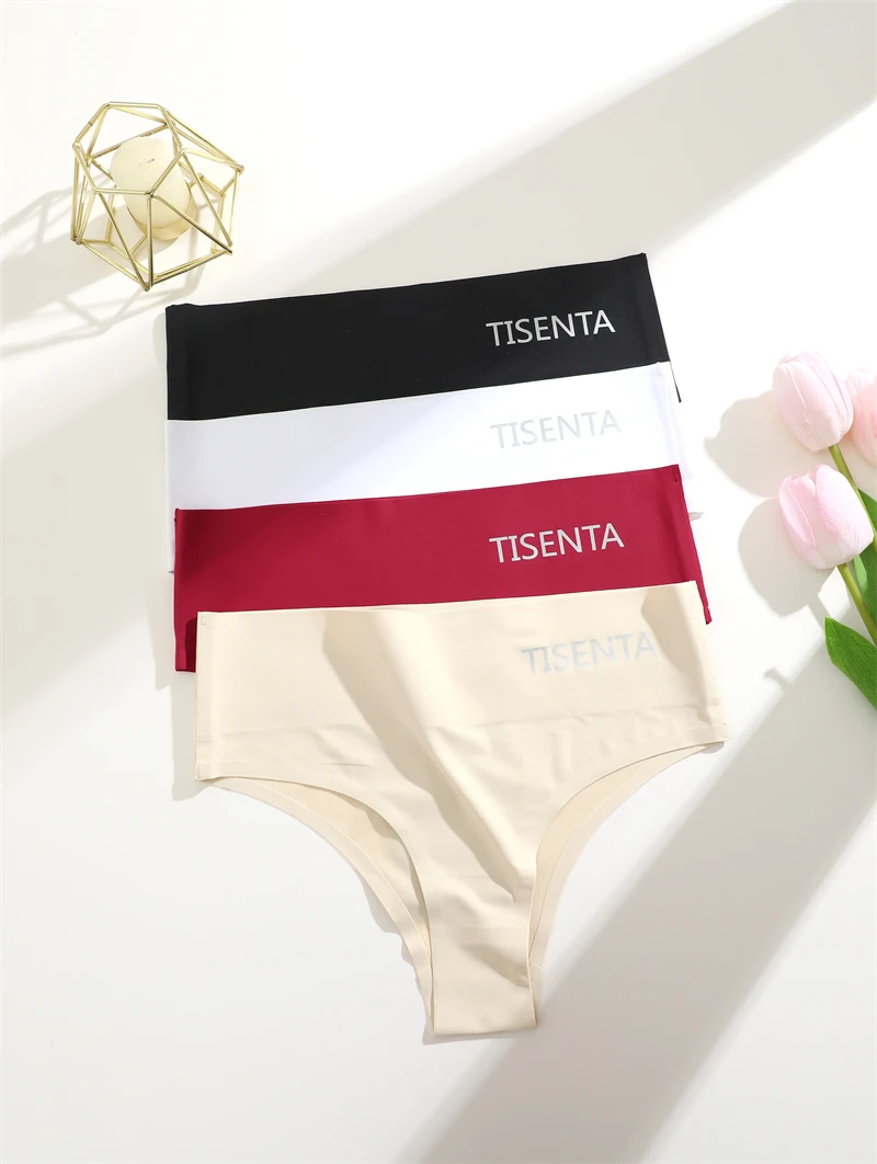 FINETOO 4Pcs Women’s Sexy Silk Panties Briefs Seamless Female Plus Size Underwear Low-Waist High elasticity Lingerie New M-4XL
