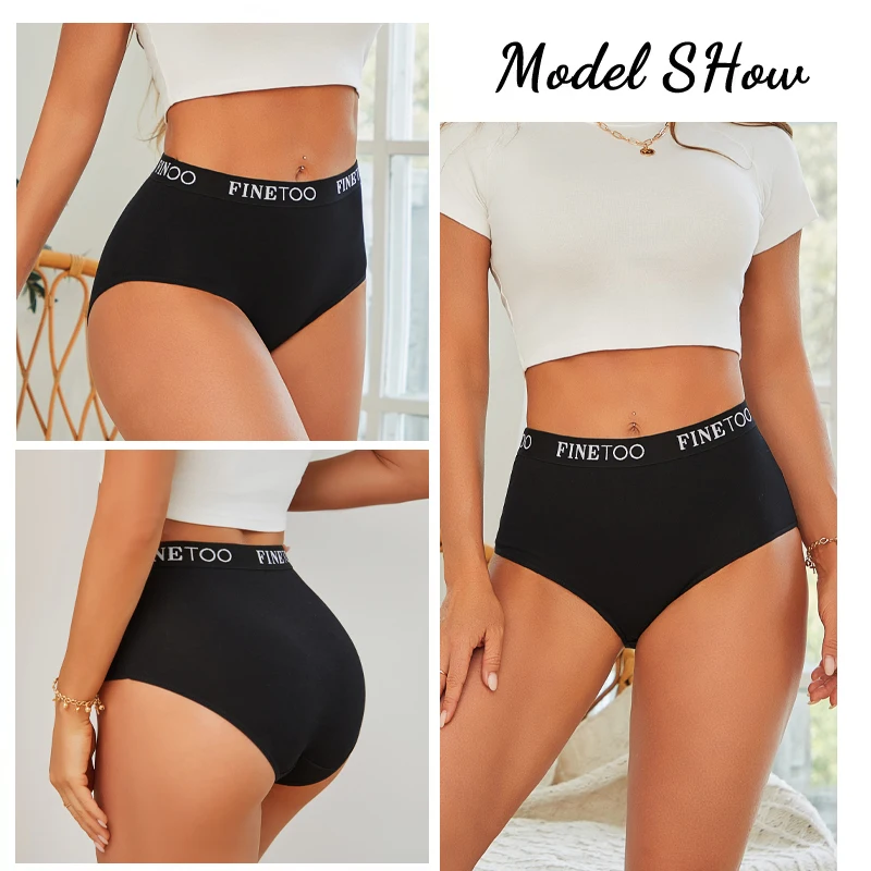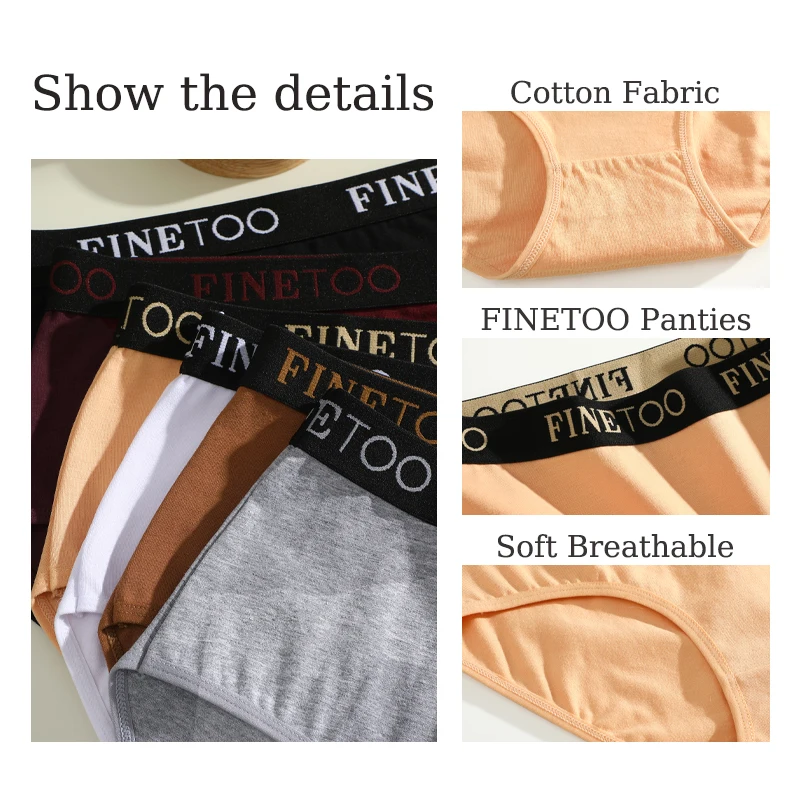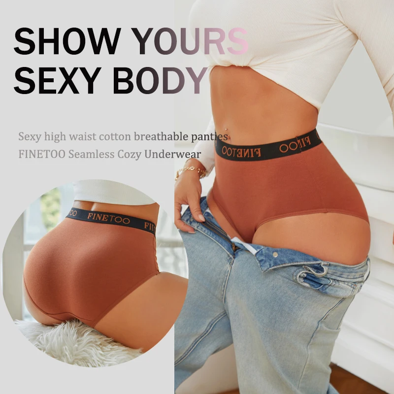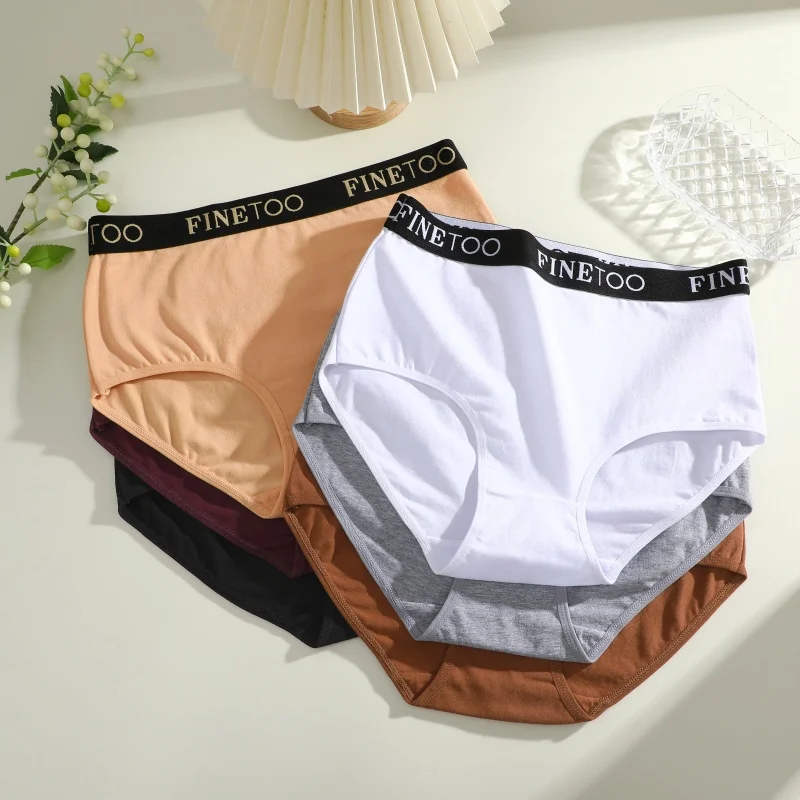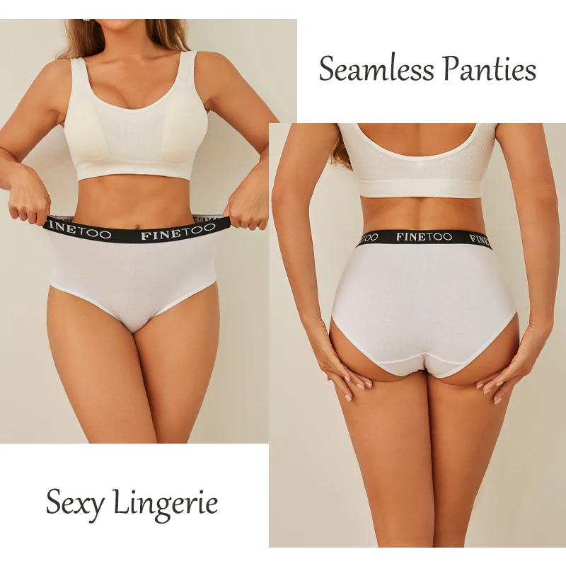 FINETOO 5PCS Women’s Seamless Cotton Fabric Briefs Solid Color High Waist Breathable Panties Female Soft Cozy Intimates Lingerie