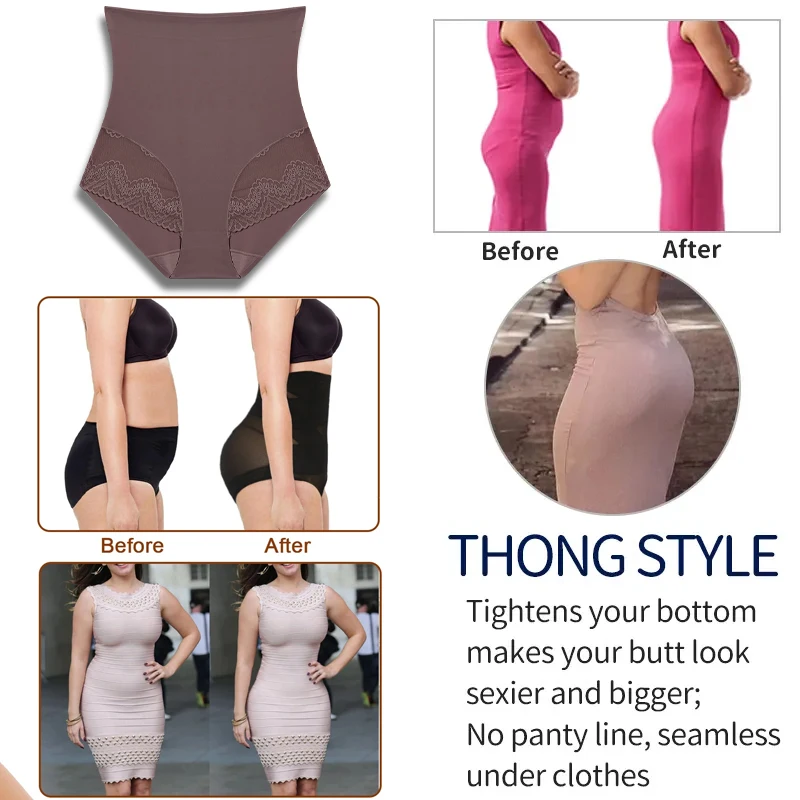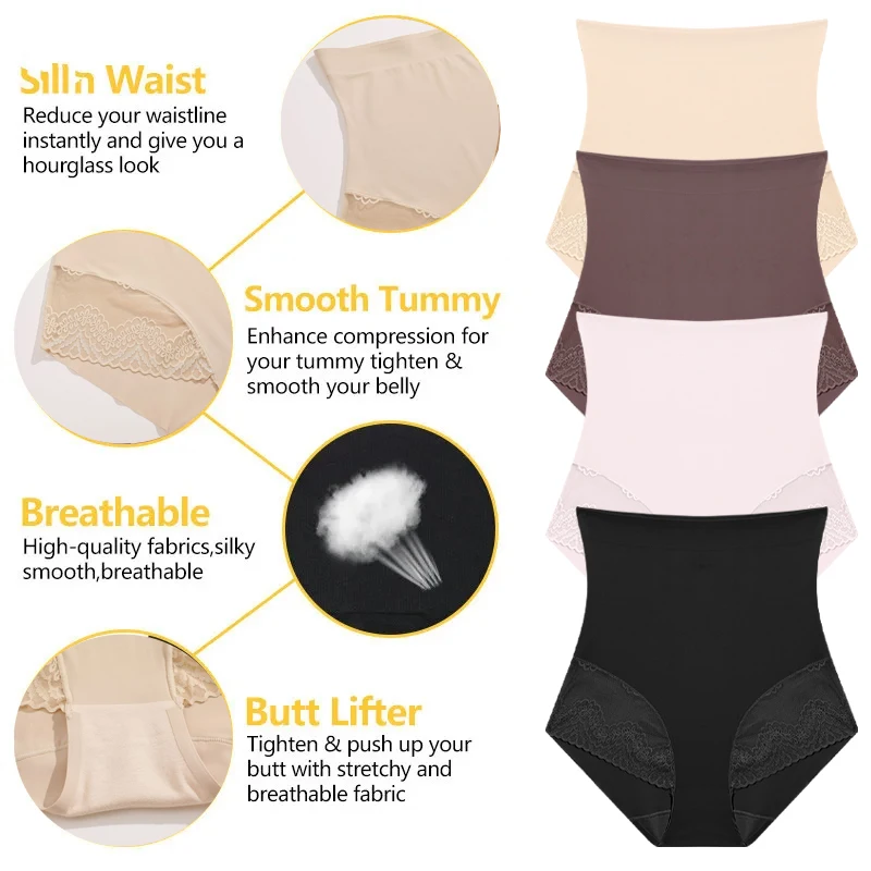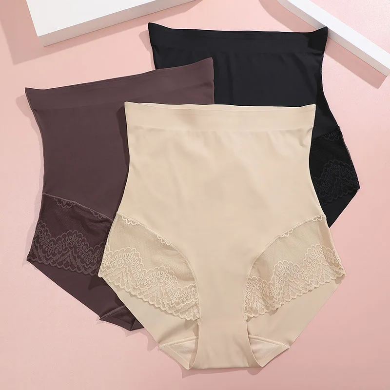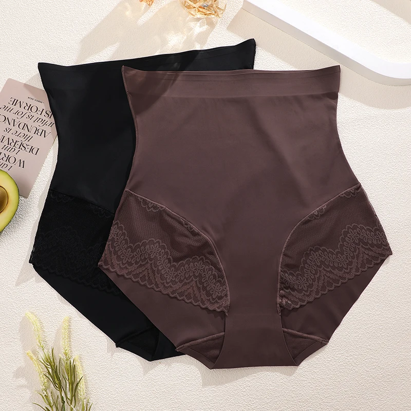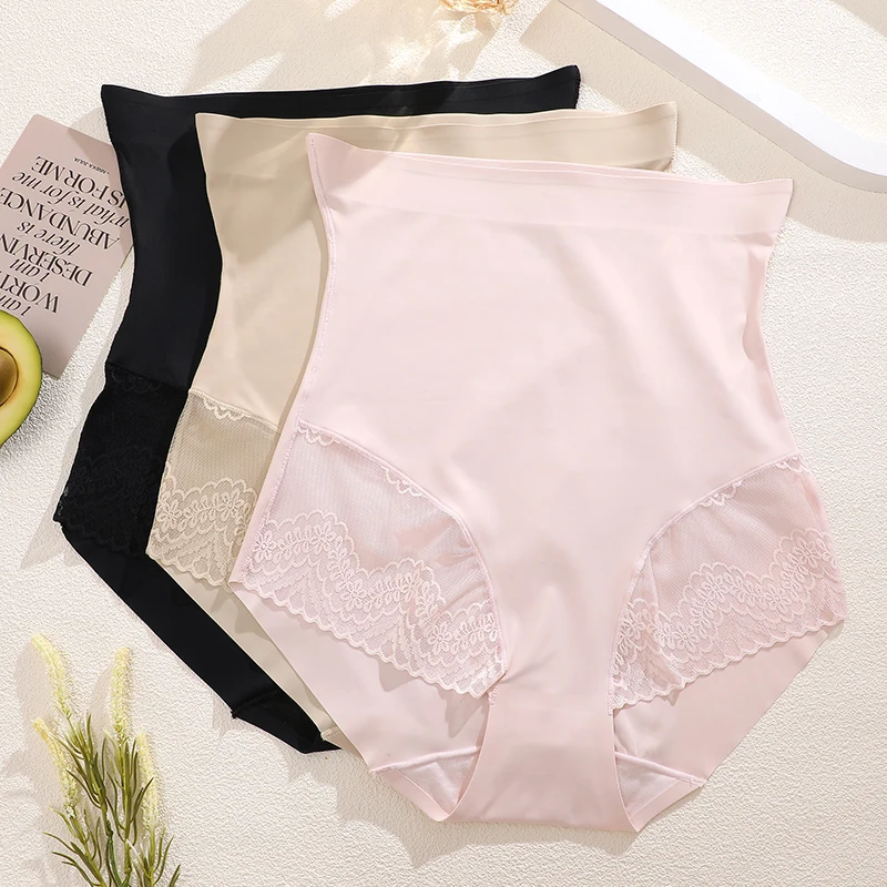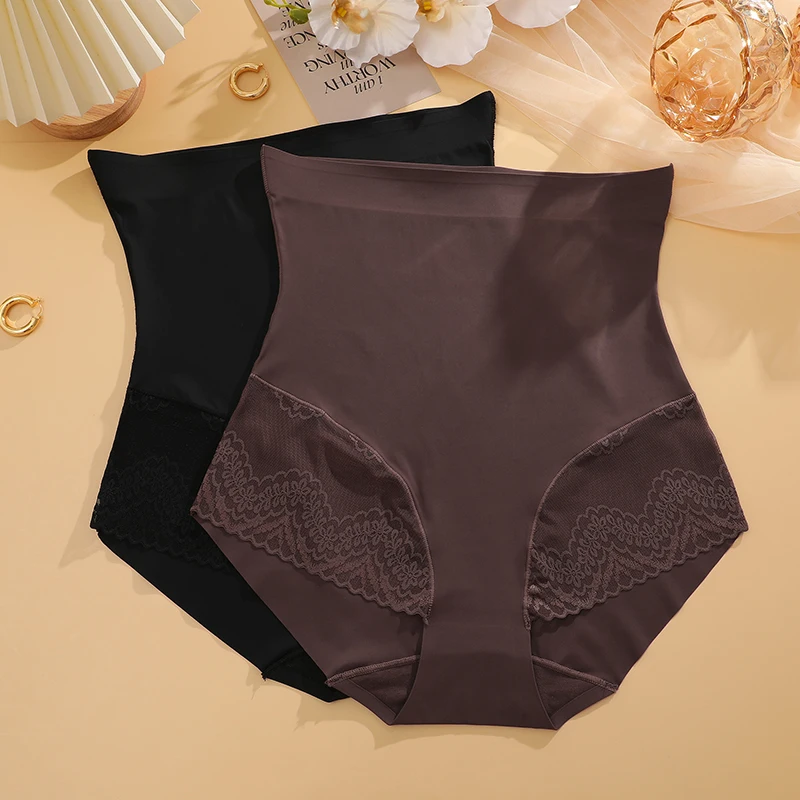 FINETOO High Waist Tummy Control Panties Women Floral Lace Underwear Seamless Butt Lifter Belly Shaping Cincher Briefs S-XXXL