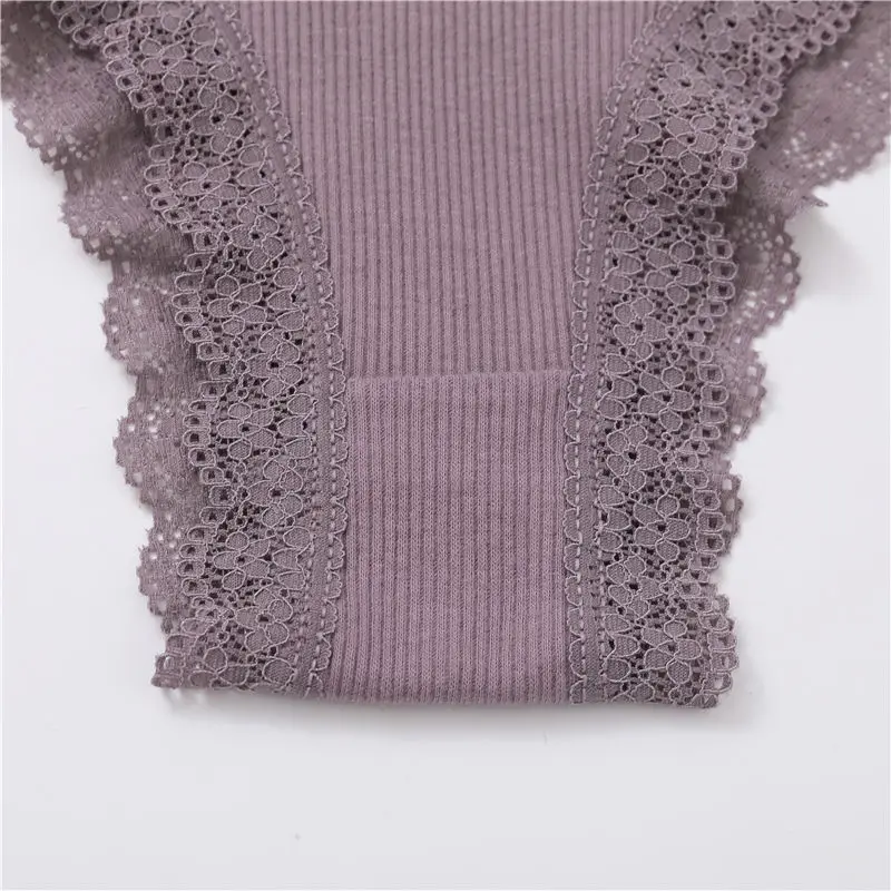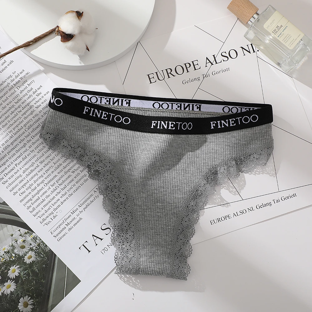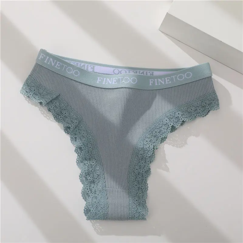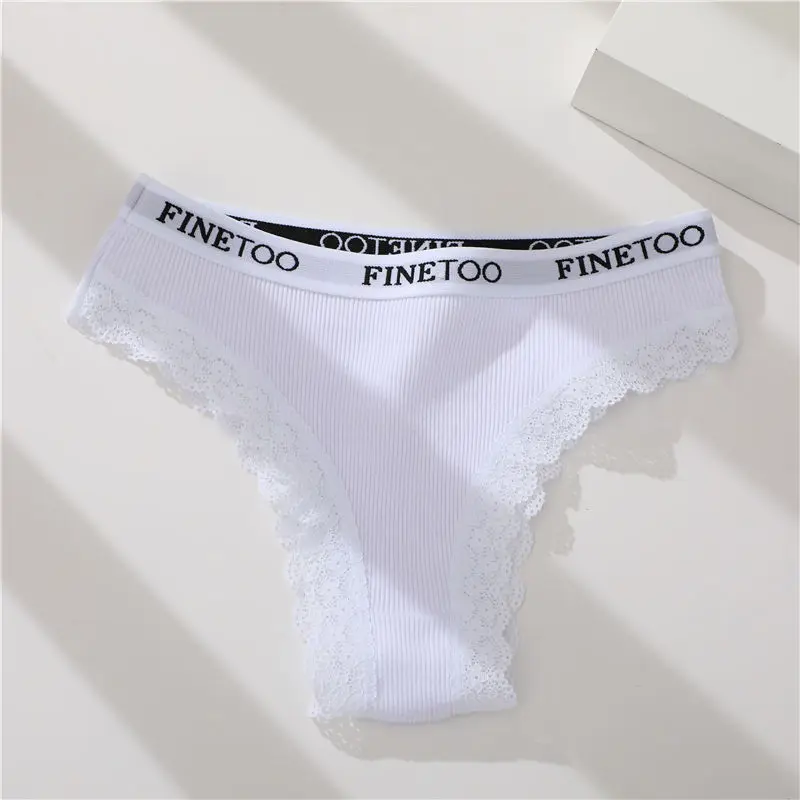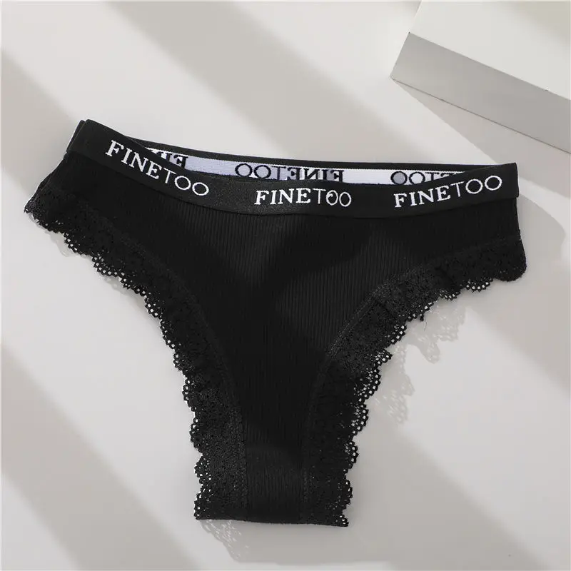 FINETOO Women Cotton Brazilian Panties Sexy Lace Low Waist Underwear Solid Color Thongs Female Plus Size G-String Lingerie M-2XL