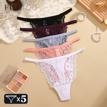 5PCS Lace Floral Underwear for Women Sexy Hollow Out Panties Solid Stretch Thong Female Perspective G-String Breathable Lingerie