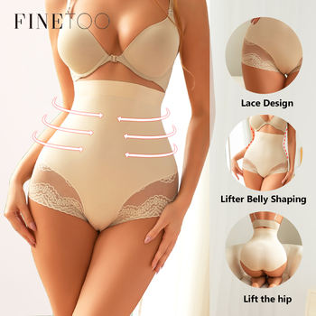 FINETOO Seamless Tummy Control Panties for Women Floral Lace Underwear High Waist Butt Lifter Belly Shaping Cincher Briefs S-3XL