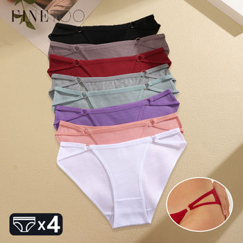 FINETOO 4PCS Women Cotton Ribbed Underwear Sexy Low-Waist Comfortable Panties Female Fashion Ring Design Briefs Soft Lingerie