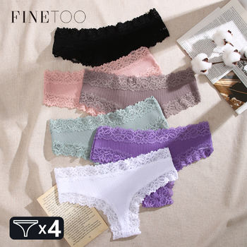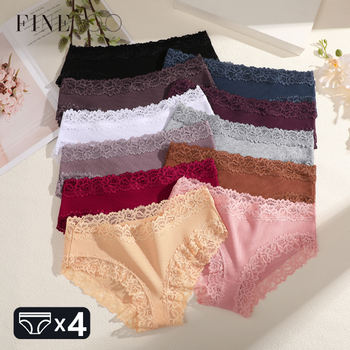 FINETOO 4Pcs Cotton Striped Underwear Women’s Lace Floral Panties Sexy Low-Waist Breathable Briefs Female Solid Comfort Lingerie