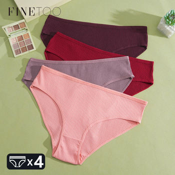 FINETOO 4PCS Women Cotton Ribbed Underwear Sexy Low-Waist Comfortable Panties Female Fashion Ring Design Briefs Soft Lingerie