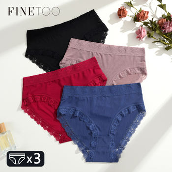 FINETOO 3Pcs Women’s Sexy Panties Lace Plus Size Underwear High Quality Striped Briefs Girls Solid Sports Comfortable Lingerie