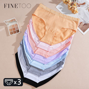 FINETOO 3Pcs Lace Striped High Elastic Underwear for Women Sexy Comfortable Low Waist Briefs Solid Color Female Lingerie Shorts