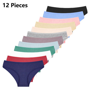 FINETOO 12pcs Cotton Women’s Lingerie M-XL Striped Solid Panties Sexy Breathable Low-Waist Briefs Female Comfortable Underpants