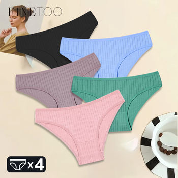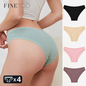 FINETOO 4pcs Cotton Ribbed Striped Underwear Women Stretch Belt Panties Sexy Low-Waist Briefs Female Soft Solid Lingerie M-XL