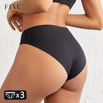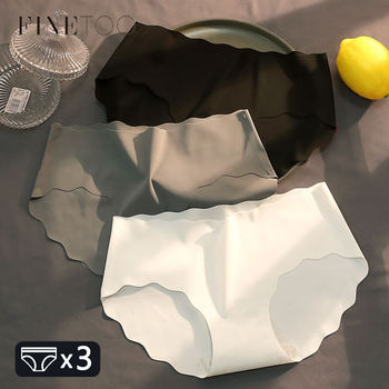 FINETOO 3PCS Seamless Panties for Women Sexy Ice Silk Underwear Soild Briefs Low Waist Comfortable Invisible Lingerie Intimates