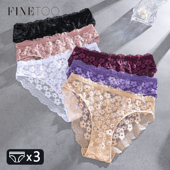 3PCS/Lot Lace Floral Underwear Women’s Hollow Out Solid Color Panties Sexy Perspective Low Waist Briefs Girls Stretchy Lingerie