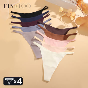 FINETOO 4Pcs Ultra Soft Seamless Underwear Women Ice Silk Thongs Sexy Stretch Solid G-String Female Invisible Breathable Panties