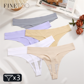 FINETOO 3PCS Seamless Female Thongs Sexy Women’s Panties Silk Satin Underwear G-Strings Low-Rise Invisible Underpants T-Back Hot