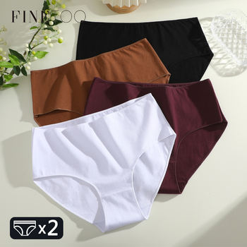 FINETOO 2Pcs/Set Cotton High Waist Panties Plus Size Solid Underwear Female Comfort Underpants Stretchy Lingerie S-XXL Intimates