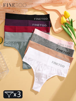 FINETOO 3pcs Women’s Stretchy Panties Sexy High Waist Thongs Plus Size Underwear for Female Breathable Solid Soft Lingerie M-2XL