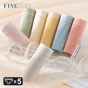 FINETOO 5PCS 100% Cotton Panties for Women Sexy Low Rise Briefs Female Breathable Underwear Solid Color Panties Lingerie M-XL