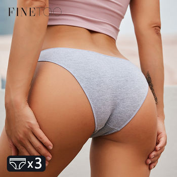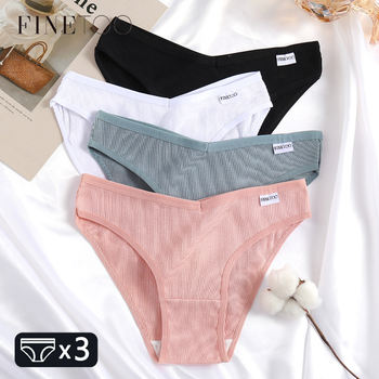 FINETOO 3PCS M-4XL Women’s Cotton Panties Sexy V Waist Underwear Plus Size Briefs Female Solid Comfortable Underpants Lingerie