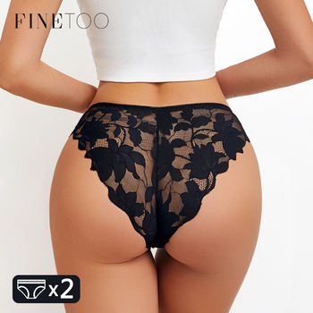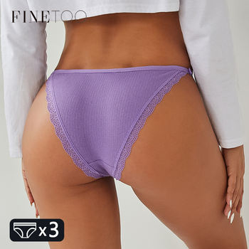 FINETOO 3Pcs Women Cotton Brazilian Panties Sexy Lace Floral Lingerie Female Seamless Low Rise Briefs Ladies Intimates Lingerie