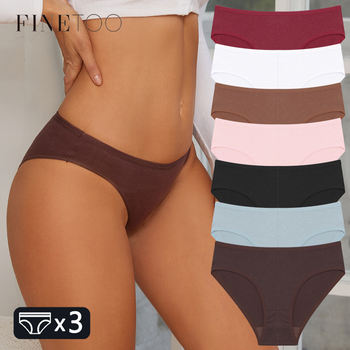FINETOO 3Pcs/set Women’s Cotton Underwear M-2XL Solid Color Panties Ladies Comfortable Underpants Girls Plus Size Soft Panty New