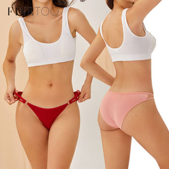 FINETOO Women Cotton Underpants Panties Sexy Low Waist Double Belt Brief Female Seamless Solid Multiple colors Intimate Lingerie