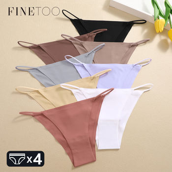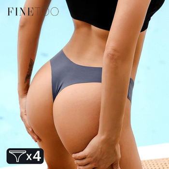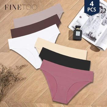 FINETOO 4Pcs Seamless Women’s Panties Silk Low Waist Briefs Female Sports Breathable Lingerie Sexy Stretchy Invisible Underwear