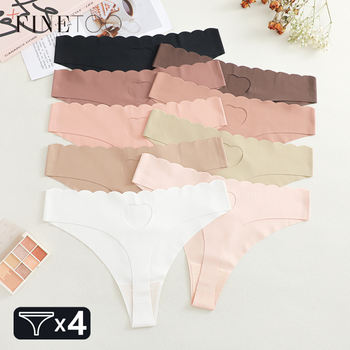 4Pcs Ice Silk Seamless Underwear Women’s Ruffles Waist Panties Sexy Love Hollow Out Thongs Girls Solid Breathable Soft Lingerie