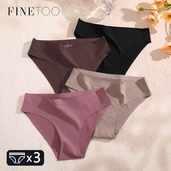 FINETOO 3Pcs/Set Seamless Panties Women Sexy Underwear Ice Silk Solid Briefs Low Waist Underpants Girls Soft Ultra-thin Lingerie