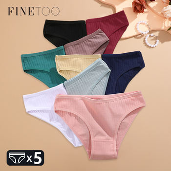 FINETOO 5Pcs Cotton Striped Underwear for Women Sexy Low-Waist Panties Solid Stretchy Briefs Female Comfort Sports Lingerie M-XL